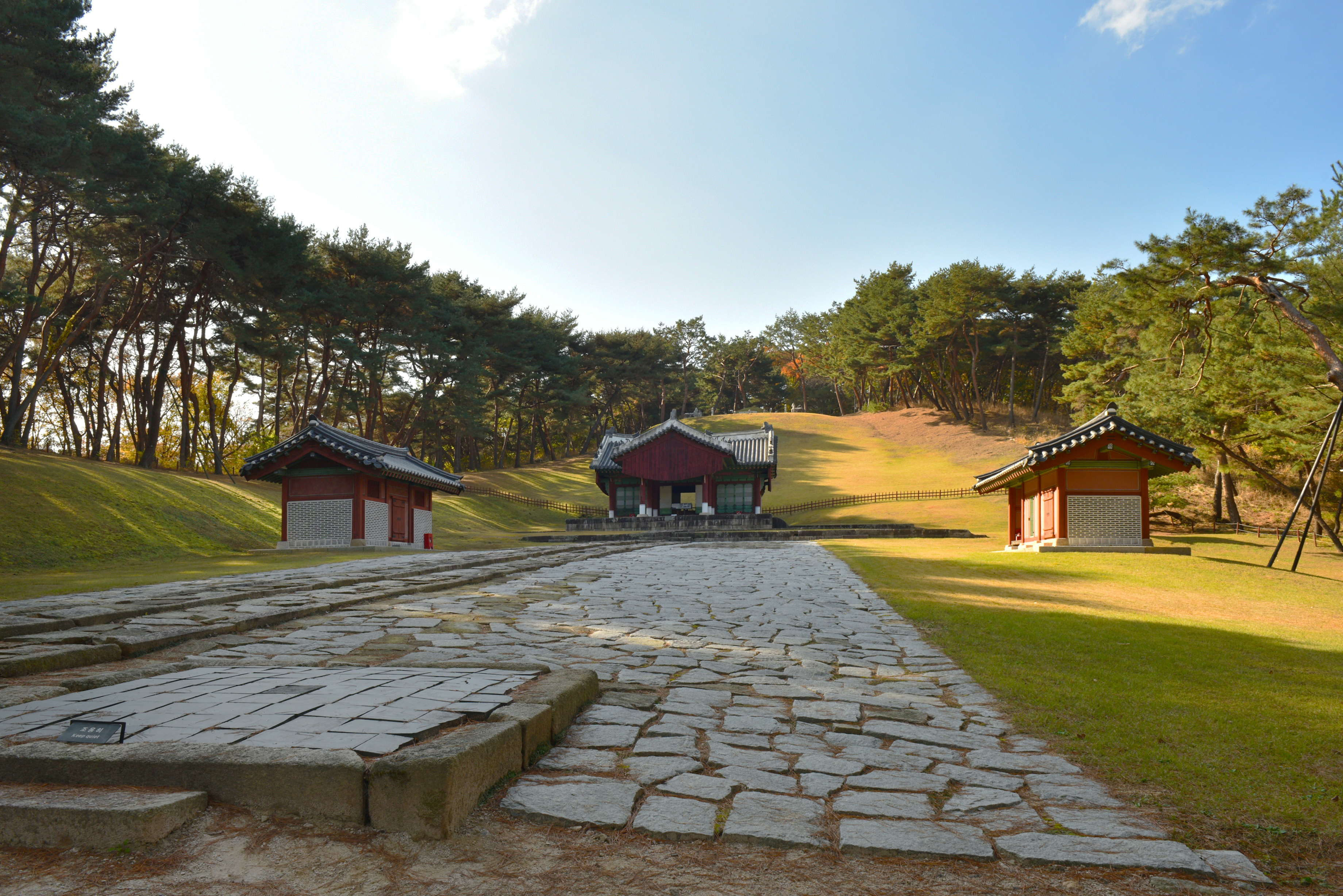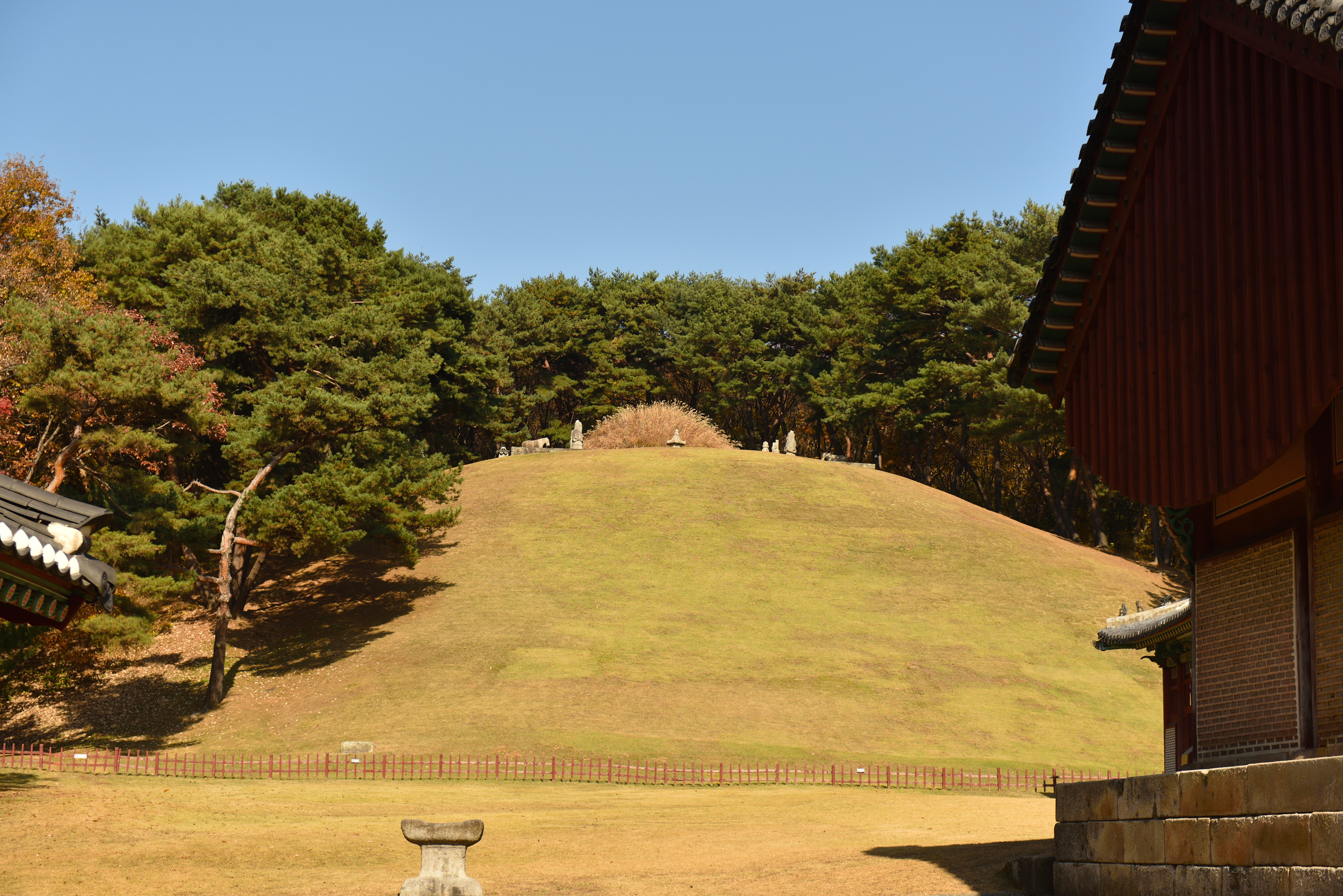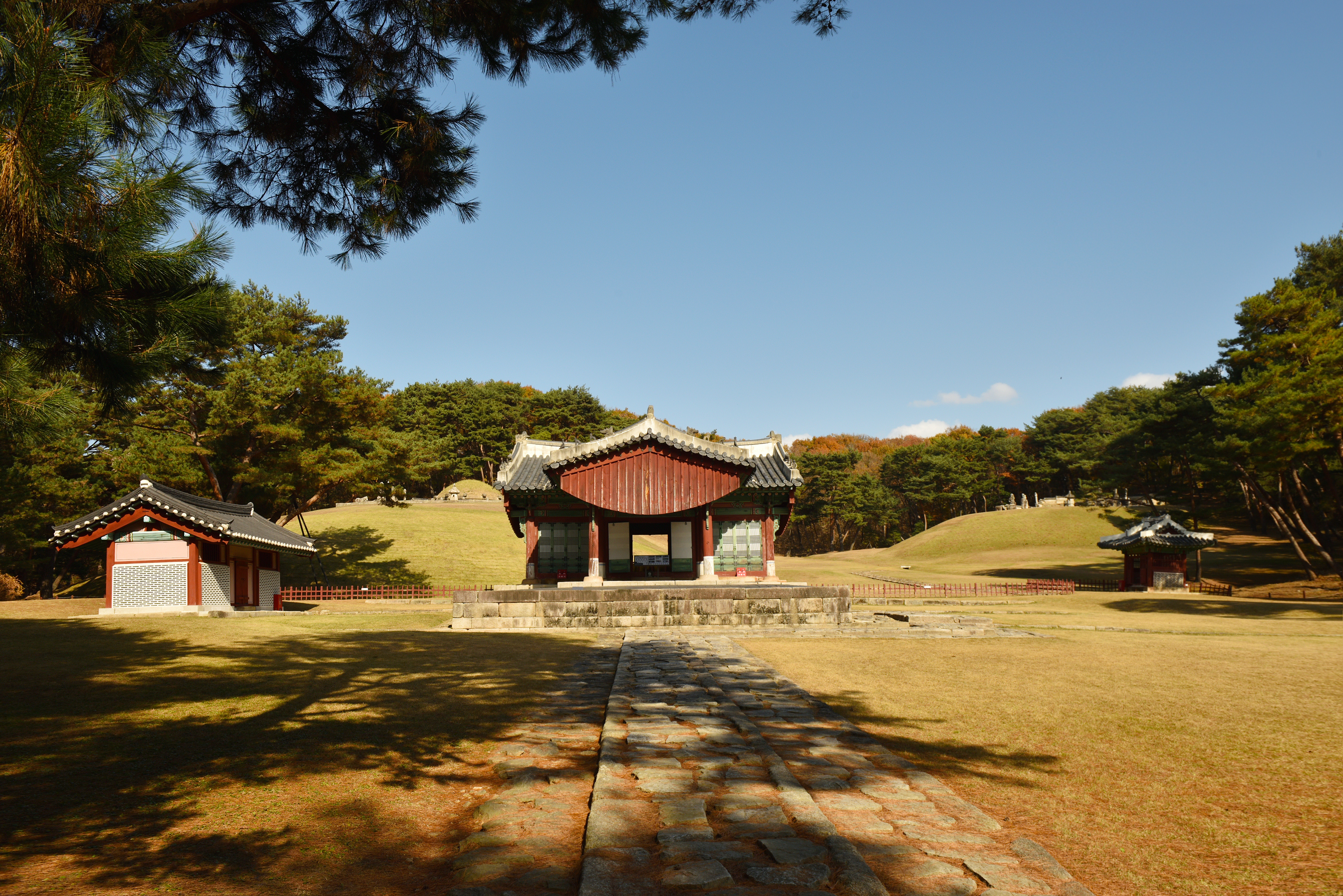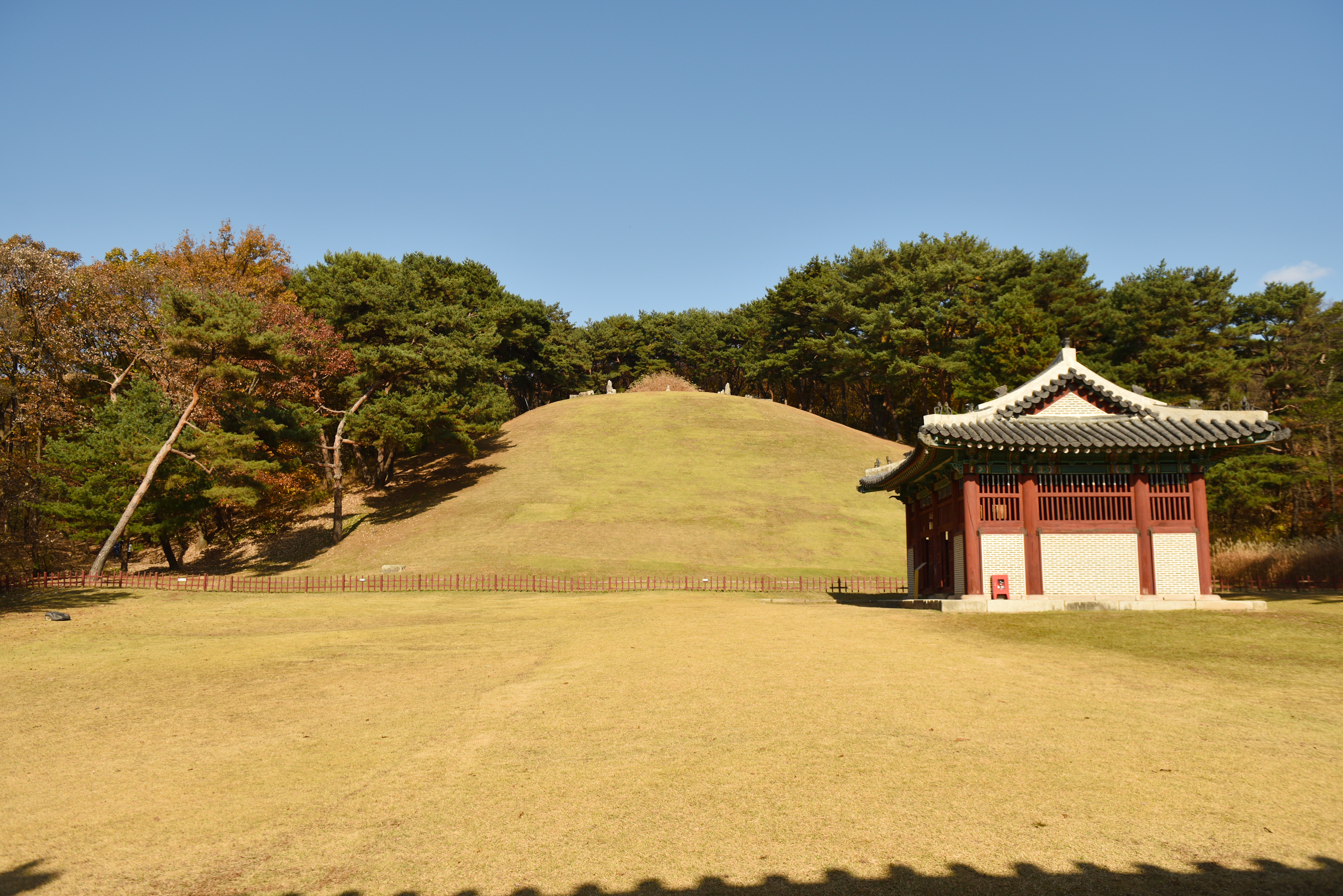 건원릉-조선을 건국한 태조 이성계의 능(1392년 개성에서 개국하여 1394년 한양으로 천도하여 조선의 기틀을 다졌다. 1408년 74세로 사망하여 이곳에 묻혔다. 봉분은 고향인 함흥의 억새를 심어 매년 4월에 단장하며 이후 벌초를 하지 않아 억새로 덮여있다.)
