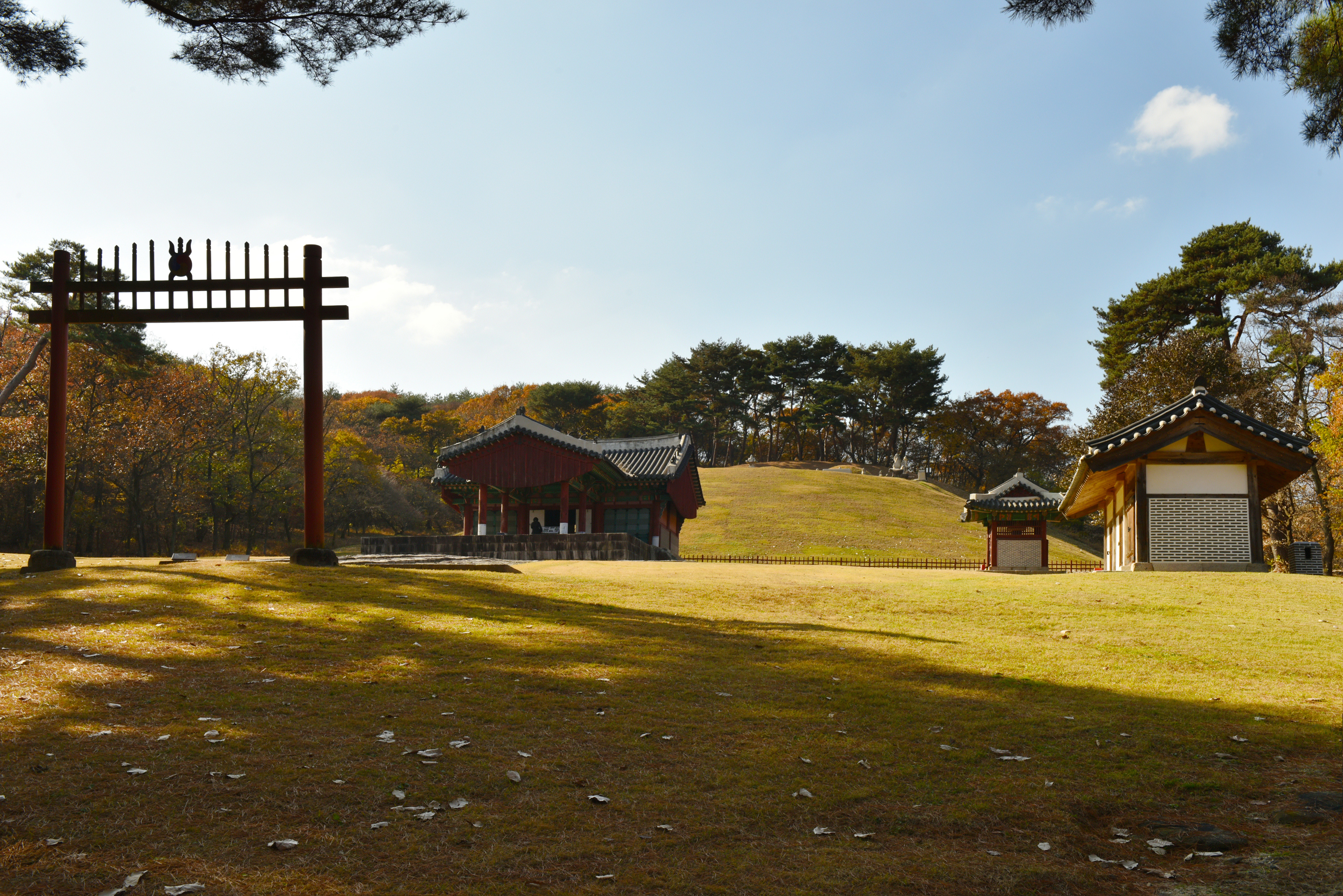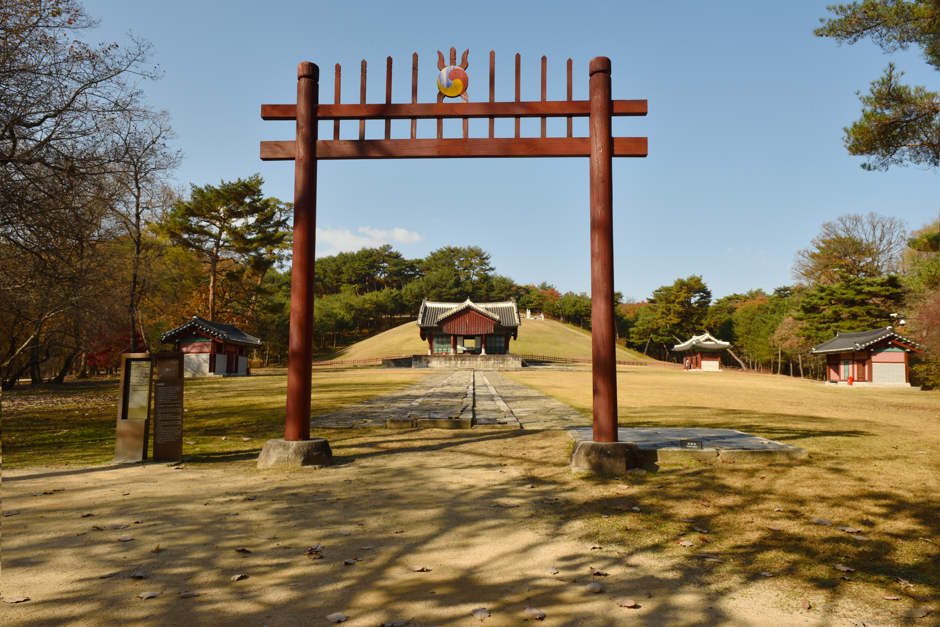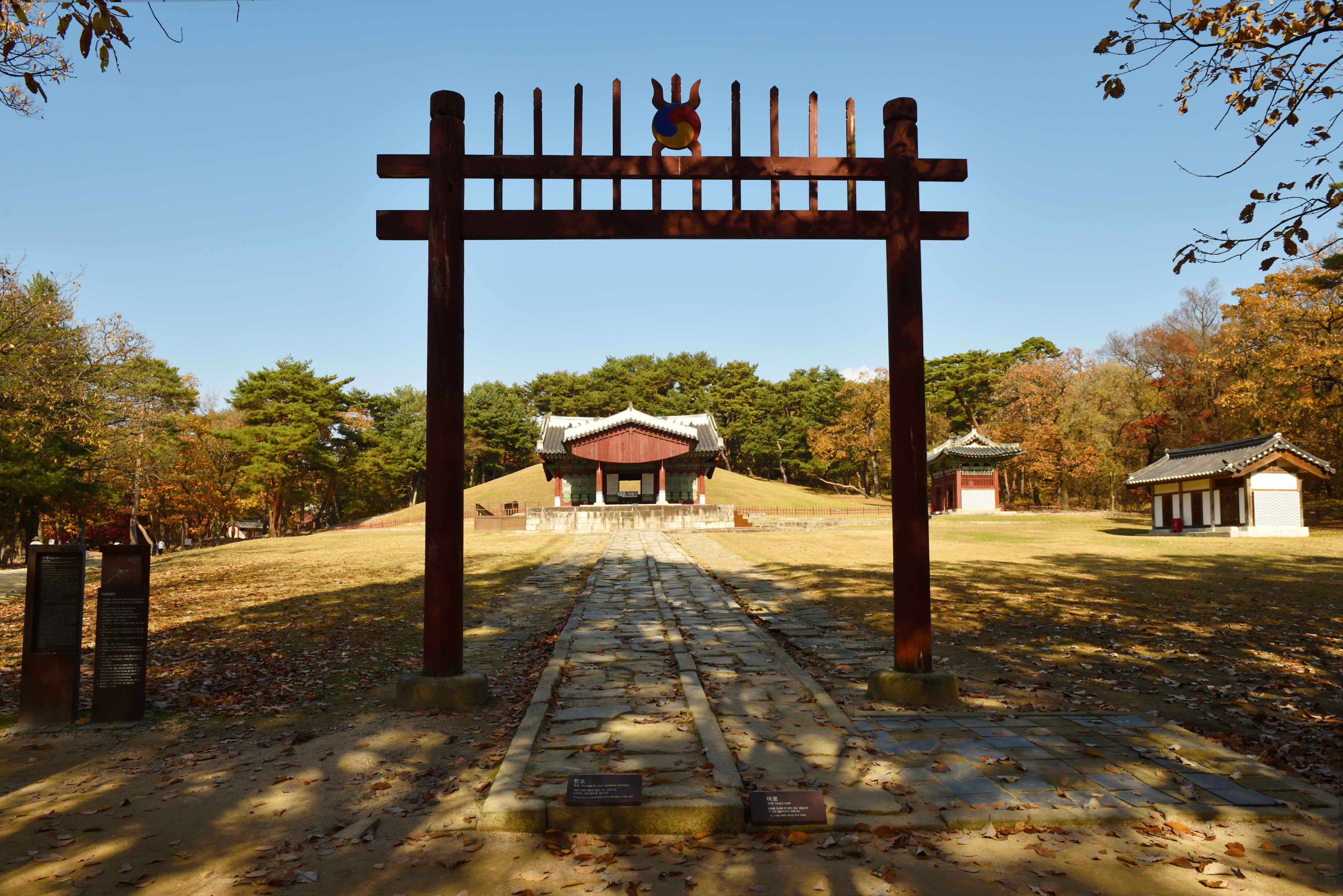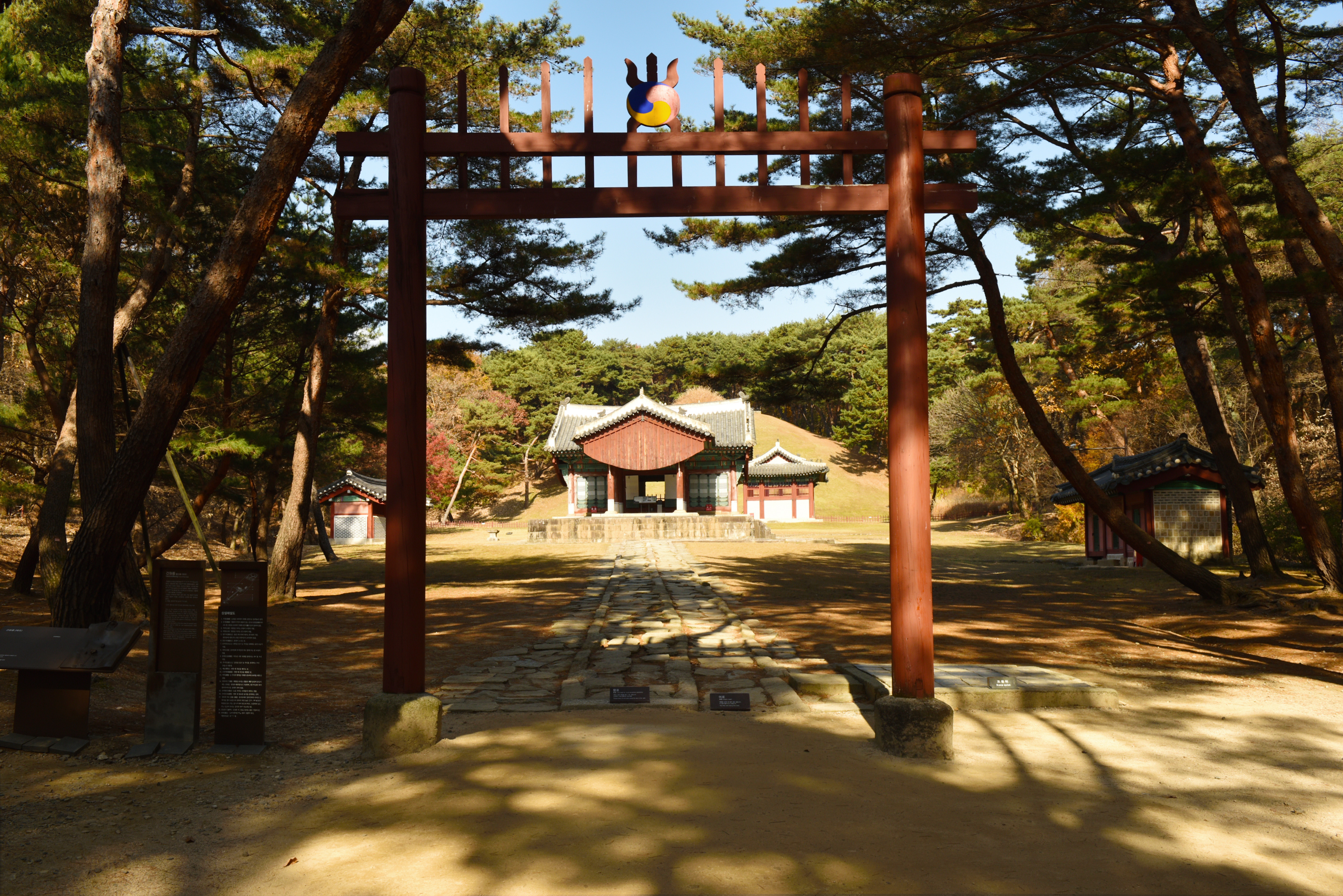 건원릉-조선을 건국한 태조 이성계의 능(1392년 개성에서 개국하여 1394년 한양으로 천도하여 조선의 기틀을 다졌다. 1408년 74세로 사망하여 이곳에 묻혔다. 봉분은 고향인 함흥의 억새를 심어 매년 4월에 단장하며 이후 벌초를 하지 않아 억새로 덮여있다.)