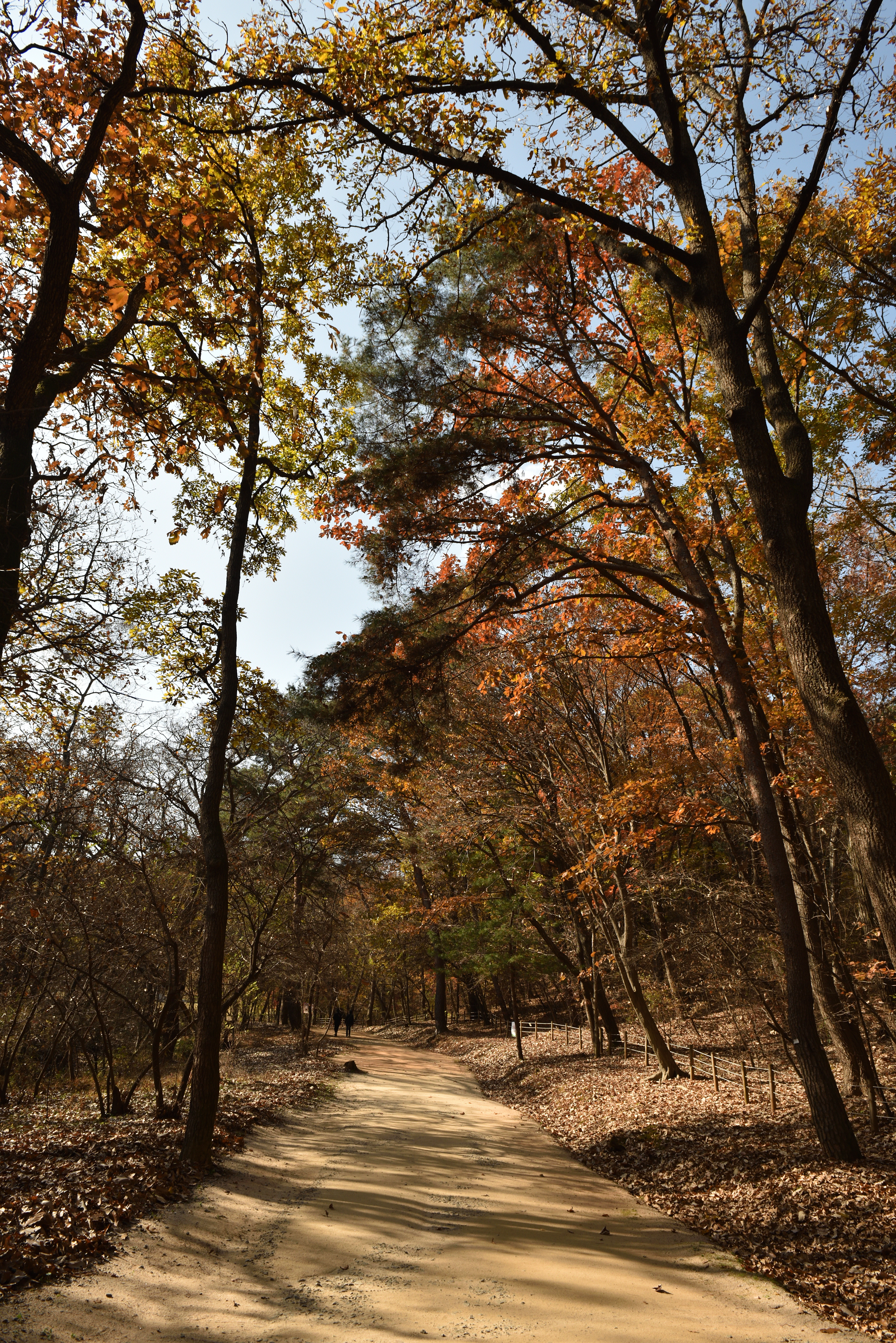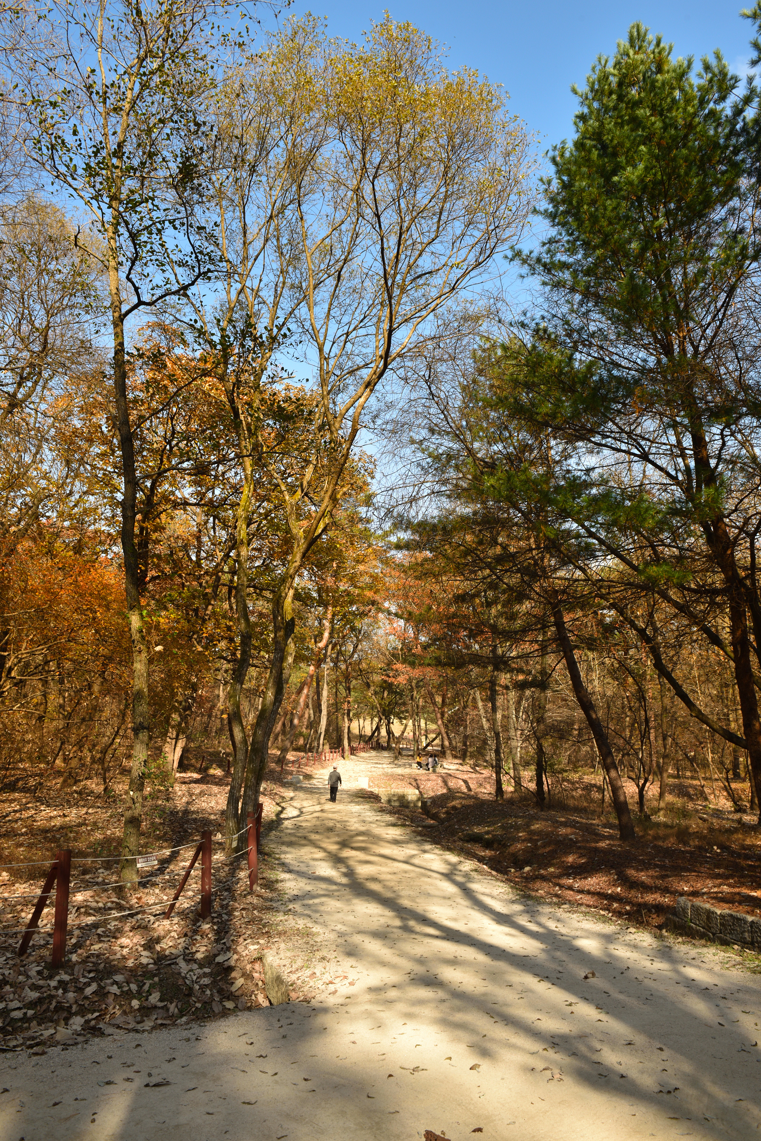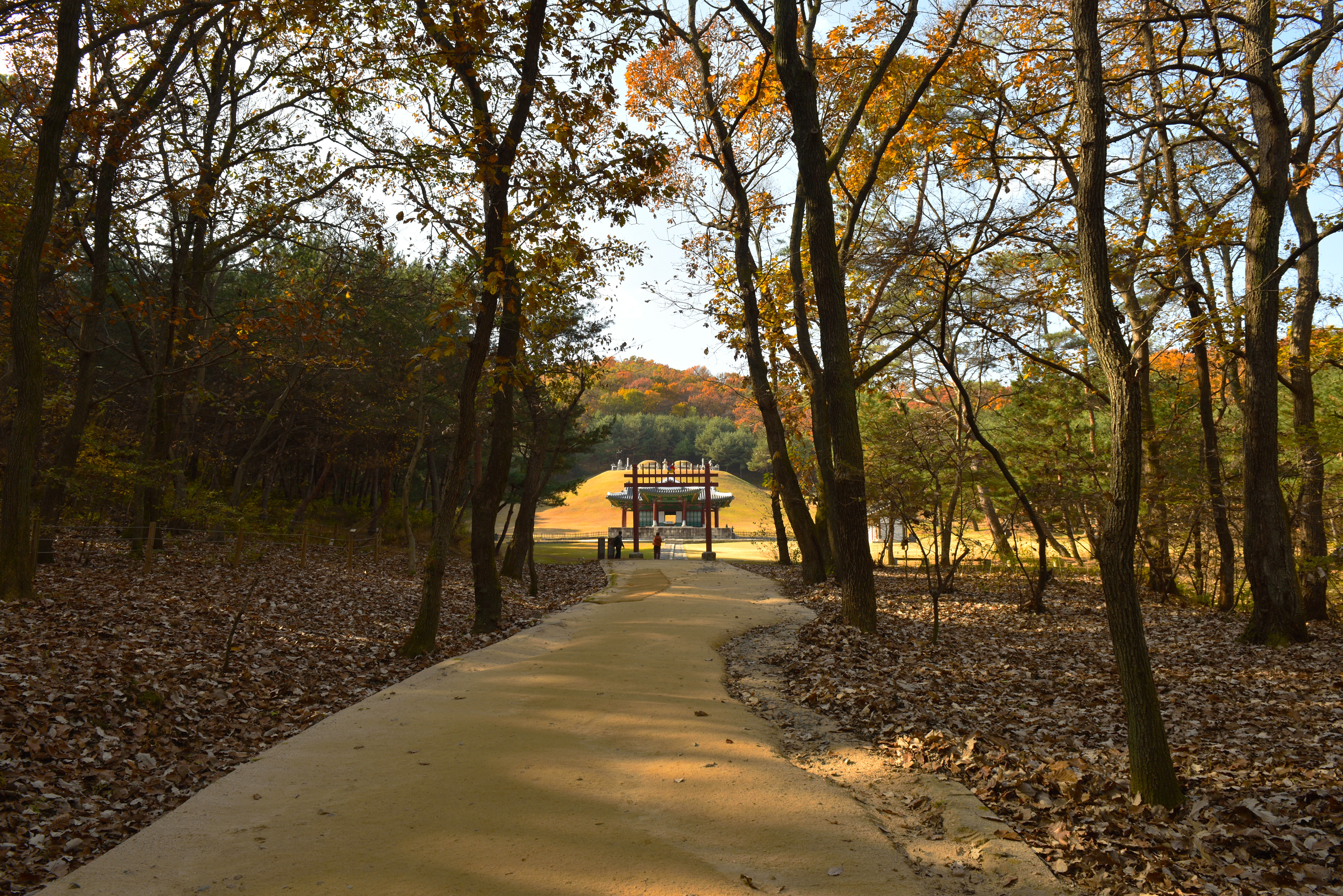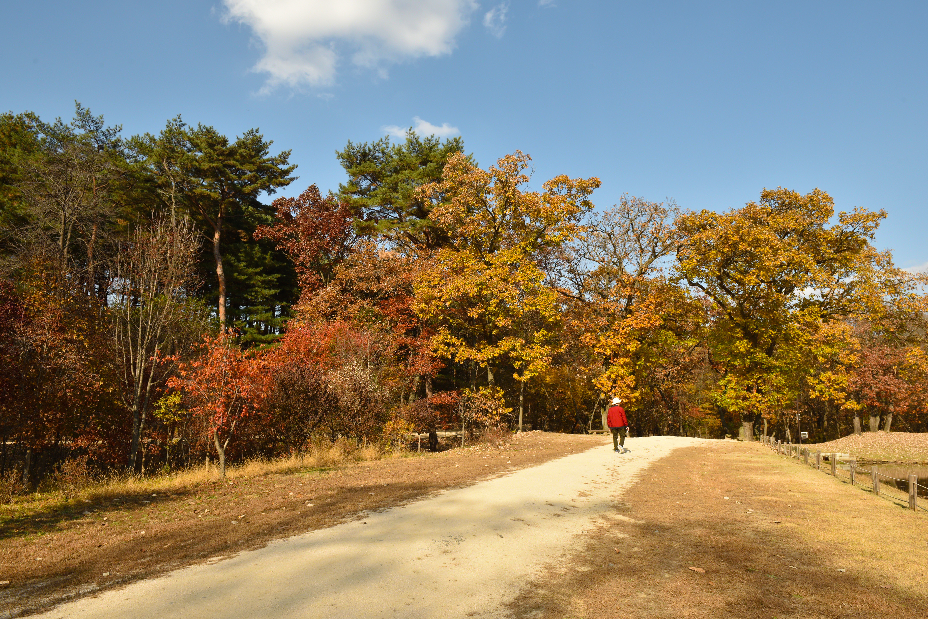 지도 검색 결과 동구릉역에서 동구릉까지는 800여m로 걸어서 10여분 정도 거리였다. 3번 출구로 나와 직선 방향으로 걸어가는데, 자동차 통행량이 대단히 많았다. 동구릉 안에 들어서자 시내에서 볼 수 없는 가을빛이 수려했다. 파문지듯 떨어져 날리는 나뭇잎 사이로 숲길을 걸으며 복잡한 세속의 시간들을 잊을 수 있었다. 왕릉을 세며 가다가 건원릉을 지나서부터 잊어버렸다. 역사에서 기억되는 역대 왕들이야 쉽게 기억되지만 왕의 아버지로 추존된 경우와 왕비들의 이름과 행적들은 보고 들을수록 헛갈려 혼란스러웠다. 안내 설명서를 보며 굽은 길을 돌아가며 능참배를 이어 갔다.