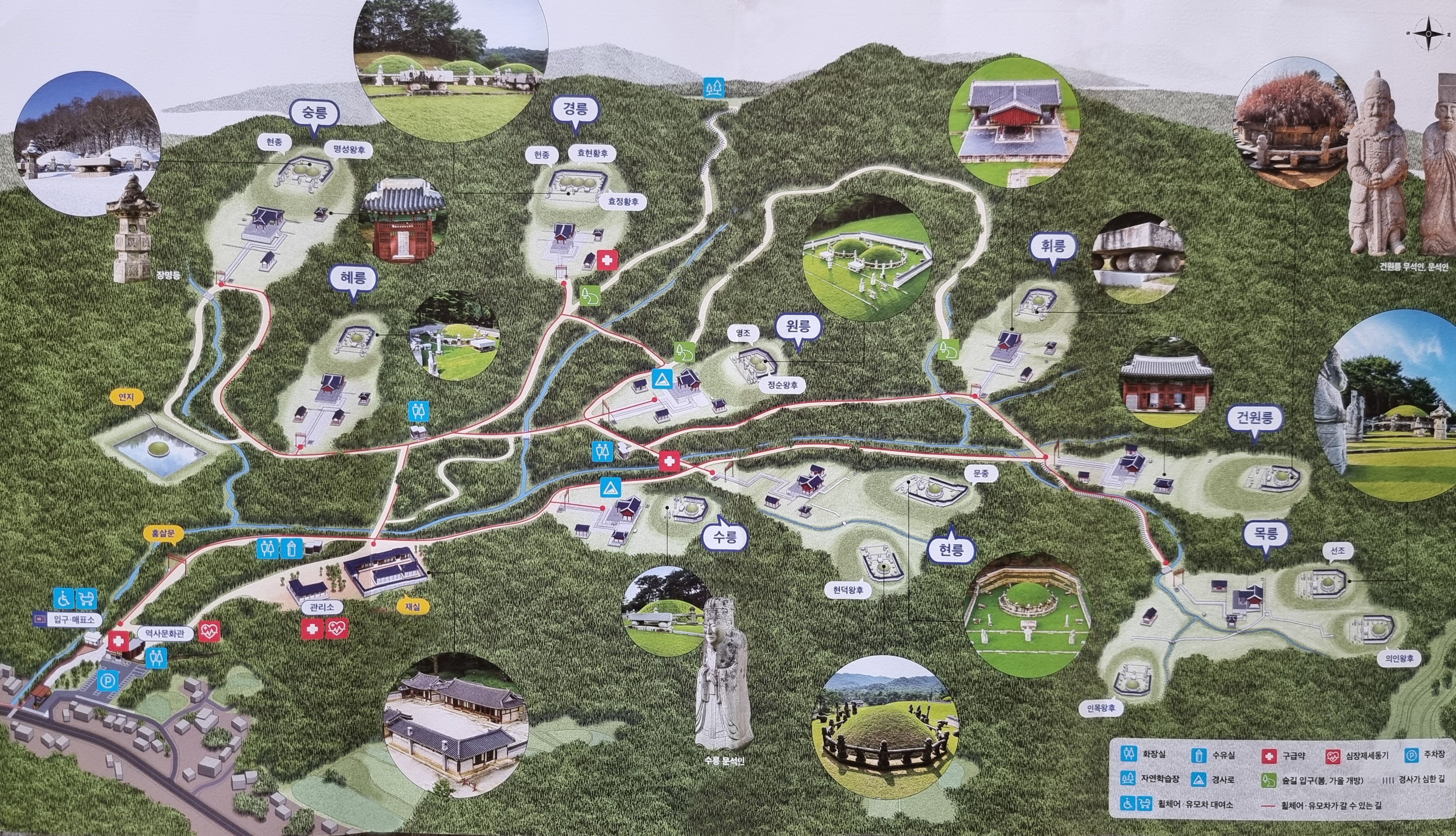 한 곳에서 아홉릉을 볼 수 있다는 것은 대단한 일이었다. 그 탓에 동구릉을 한 바퀴 순회해도 구릉의 이름이 잘 기억되지 않는다. 왕릉은 한양도성에서 100리를 넘지 않는 범위에 있어야 하기에 한양 동쪽 이 지역에 왕릉이 많다. 동쪽 방향으로 서울 노원구의 태릉(중종의 계비 문정왕후) 강릉(명종과 인순왕후), 남양주 금곡에 홍릉(고종)과 유릉(순종), 진건읍에 사릉(단종비 정순왕후) 진접읍에 광릉(세조와 정희왕후) 등이 있다.