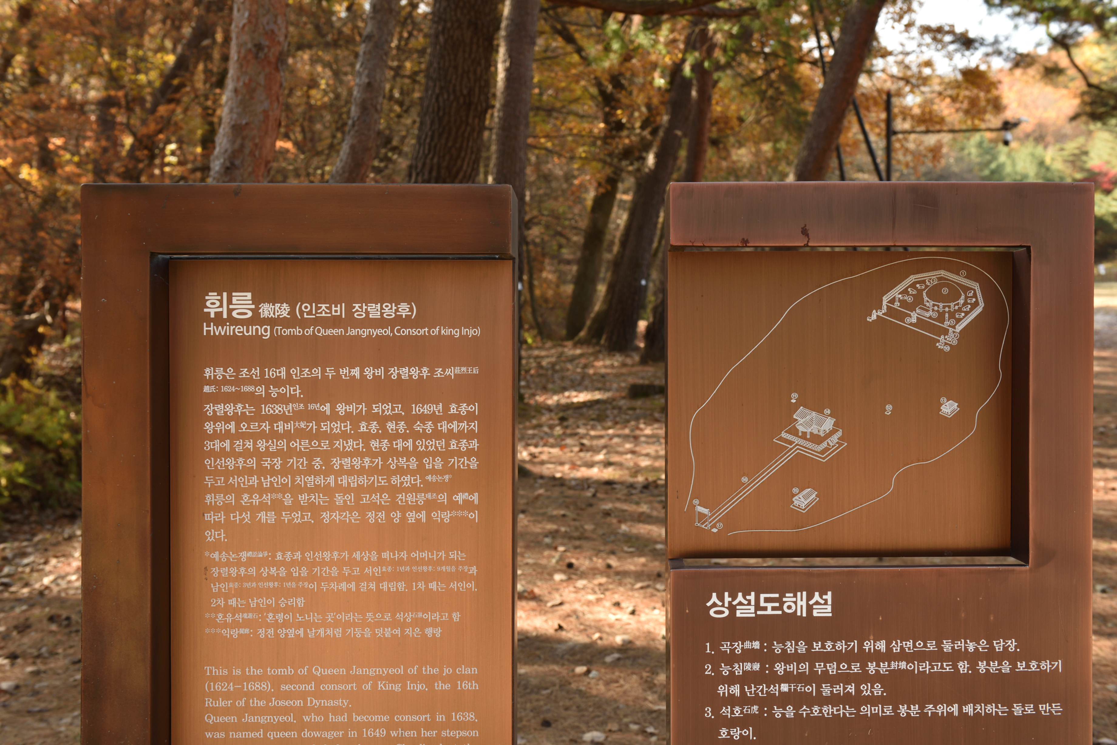 휘릉 - 16대 인조의 두 번째 왕비 장렬왕후 조씨의 능. 1638년 인조 16년에 왕비가 되었고 효종 즉위 후 대비가 되어 현종-> 숙종 때까지 왕실의 어른으로 지냈다.