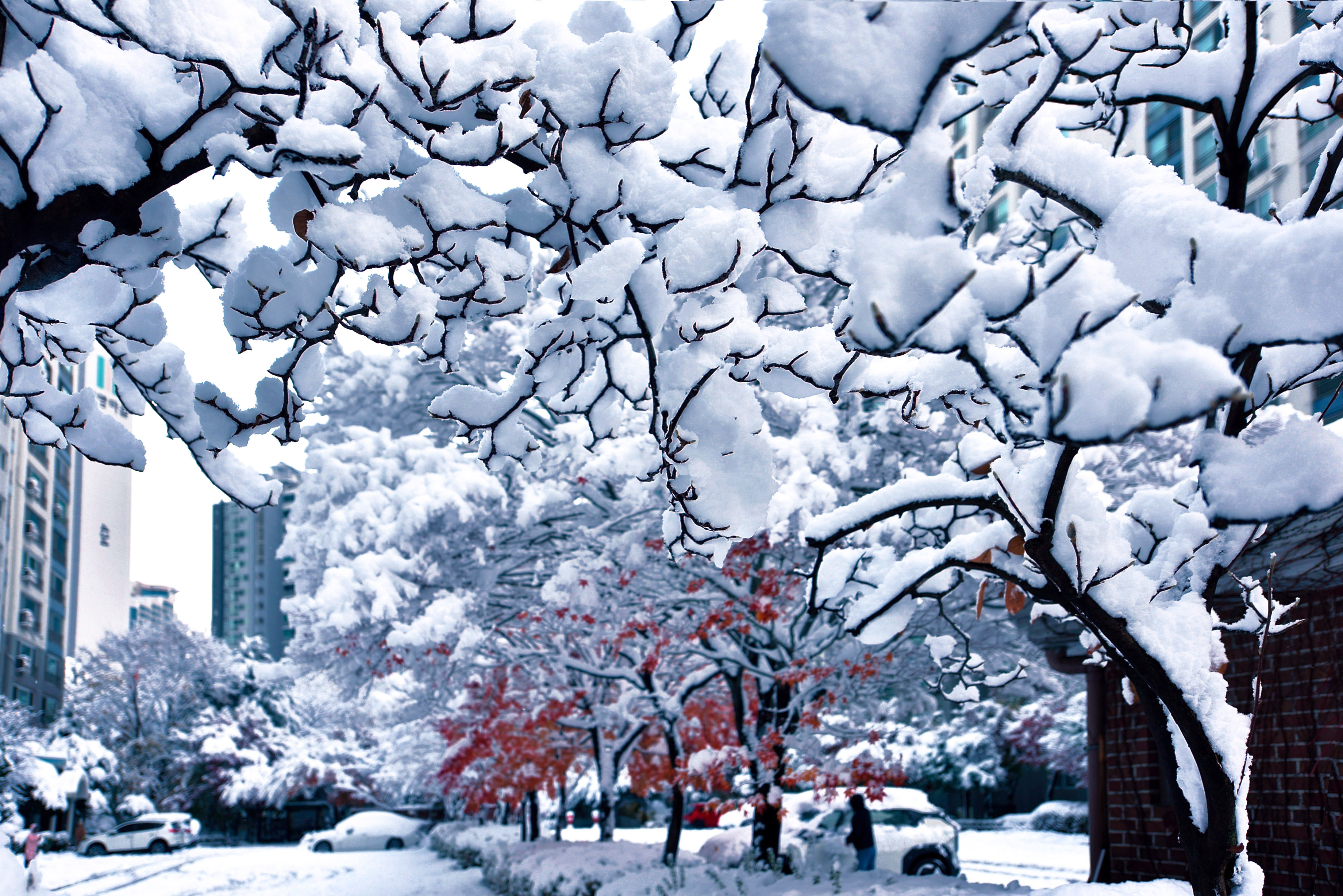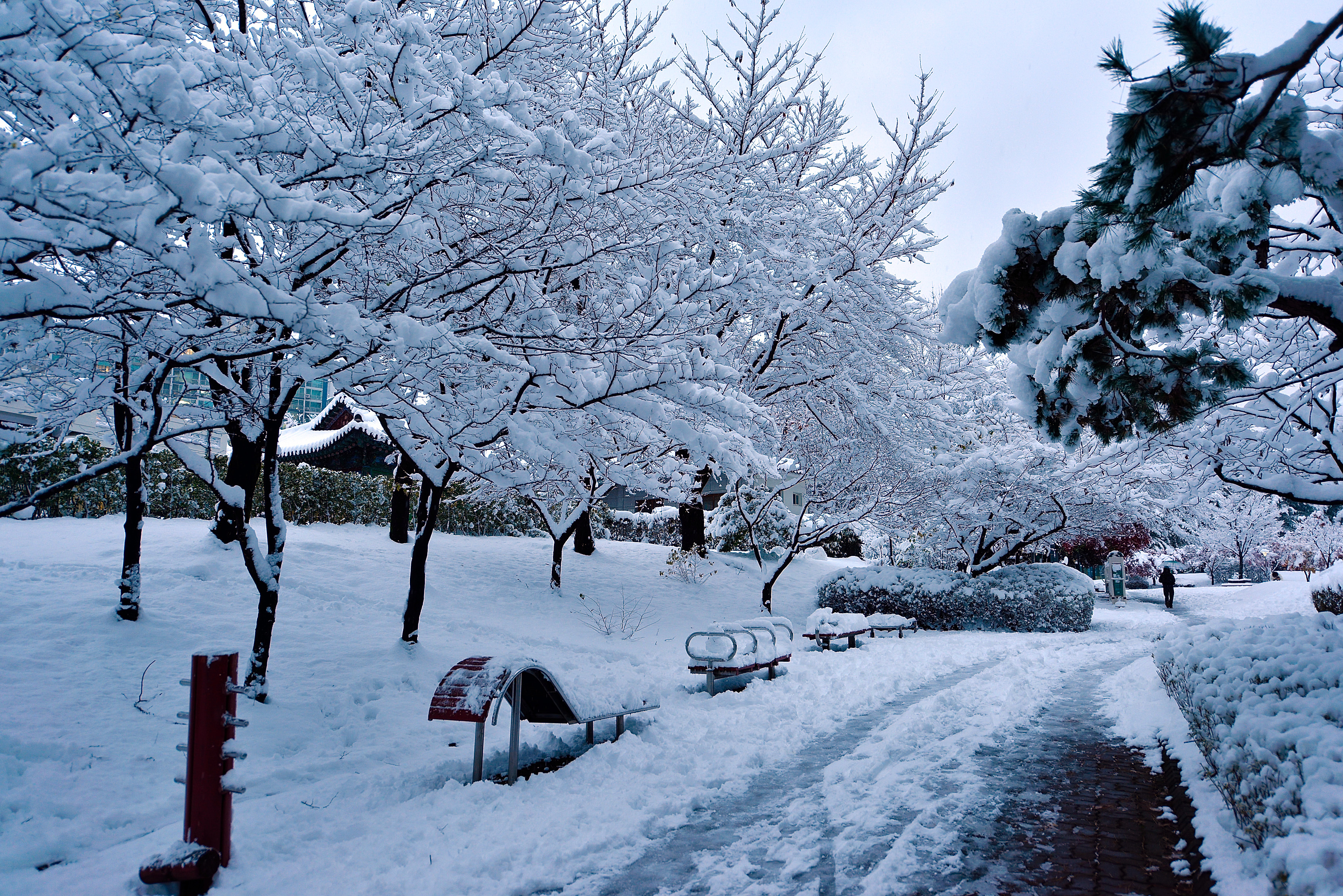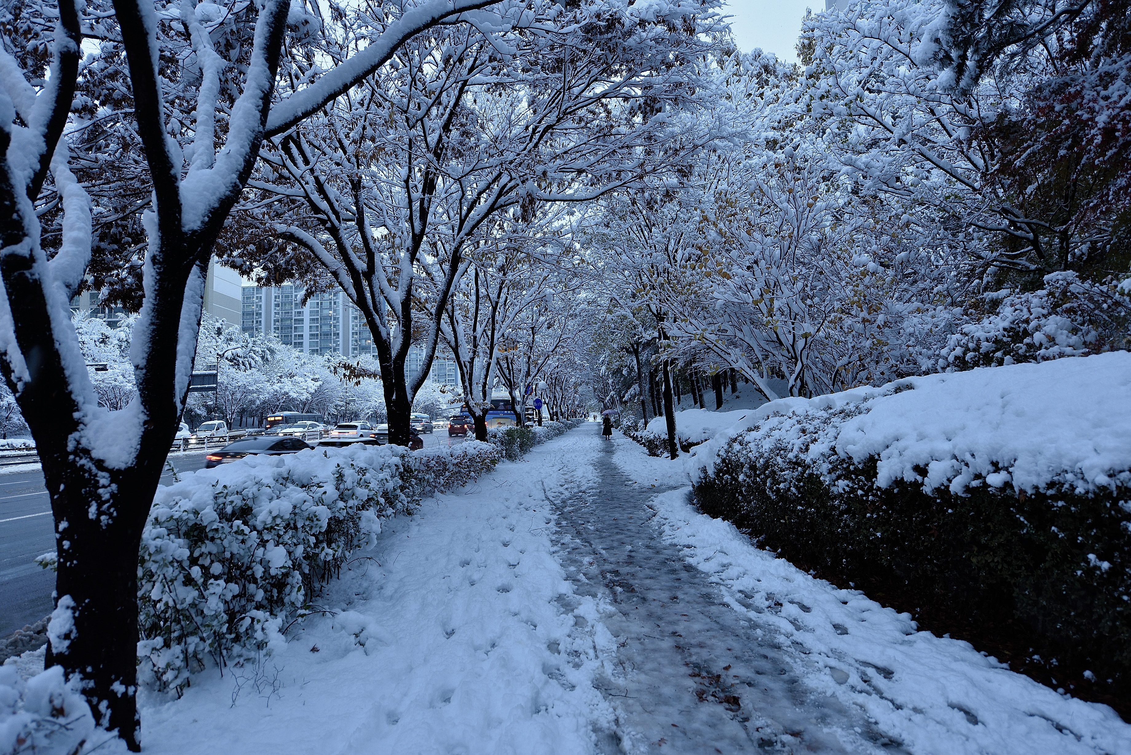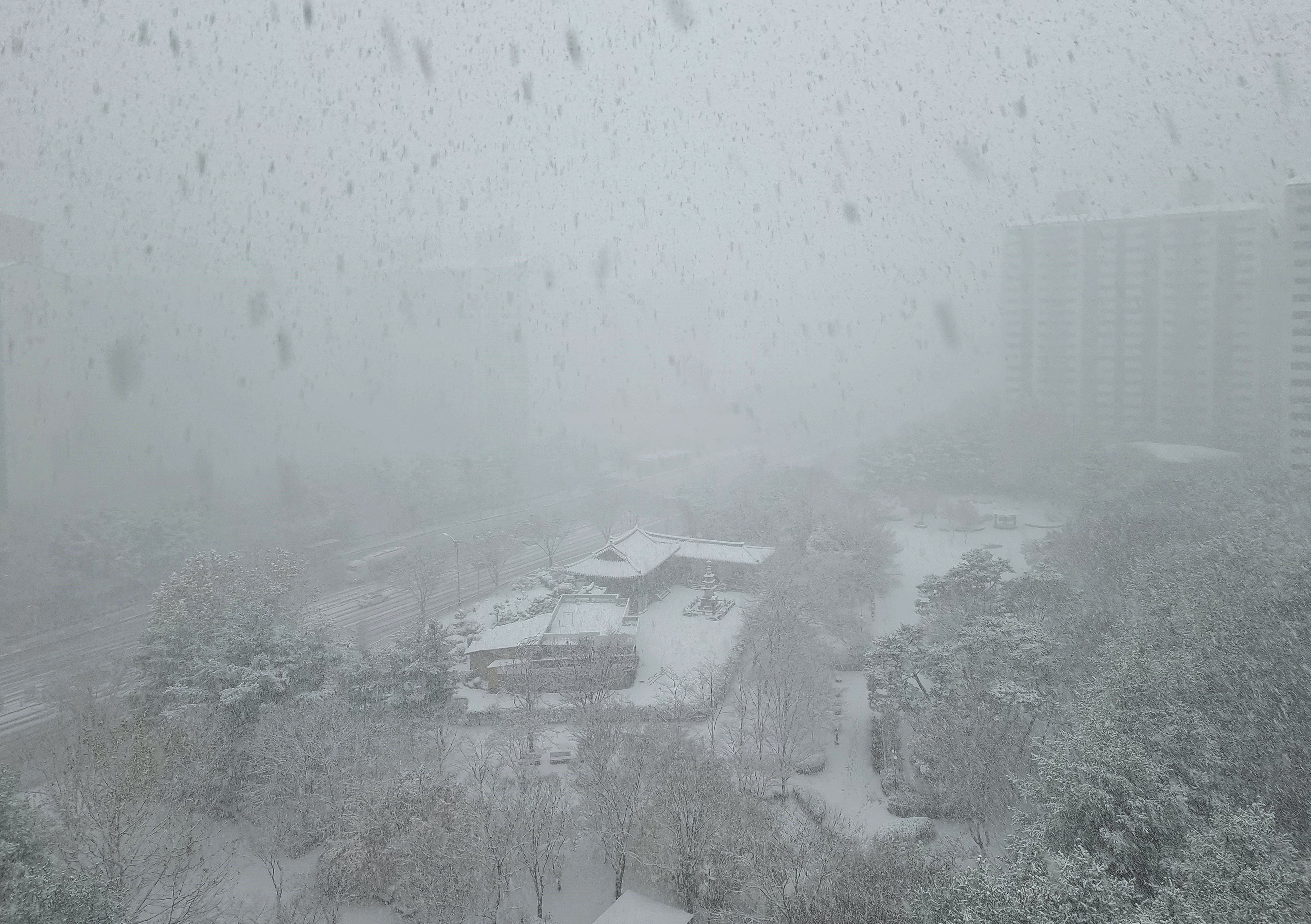 아침부터 하염없이 내리던 눈은 저녁까지 쉬지 않고 내렸다. 중간중간에 간헐적으로 조금씩 쉬어가긴 했지만, 삽시간에 이리 많이 내린 눈은 아마도 처음 보는 것 같다. 다행히 날씨가 춥지 않아 자동차 통행이 많은 큰길만 녹았다. 녹아 흐르는 눈물이 쌓인 눈아래로 흘러 도로 건널목을 건널 때마다 발이 풍덩 빠져 신발이 젖었다. 보도엔 밟힌 눈이 다져져서 얼음판이 되어 매우 미끄러웠다.