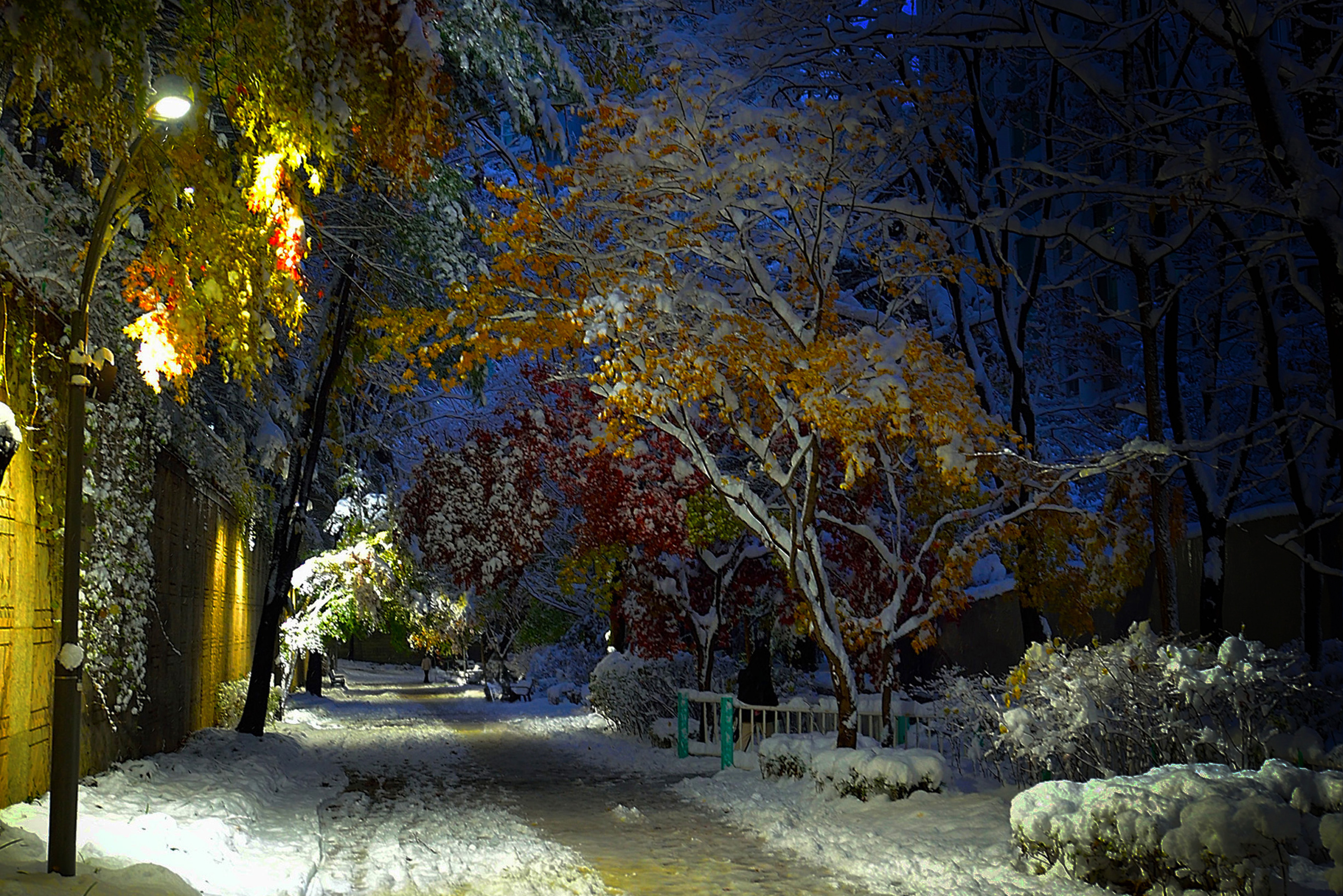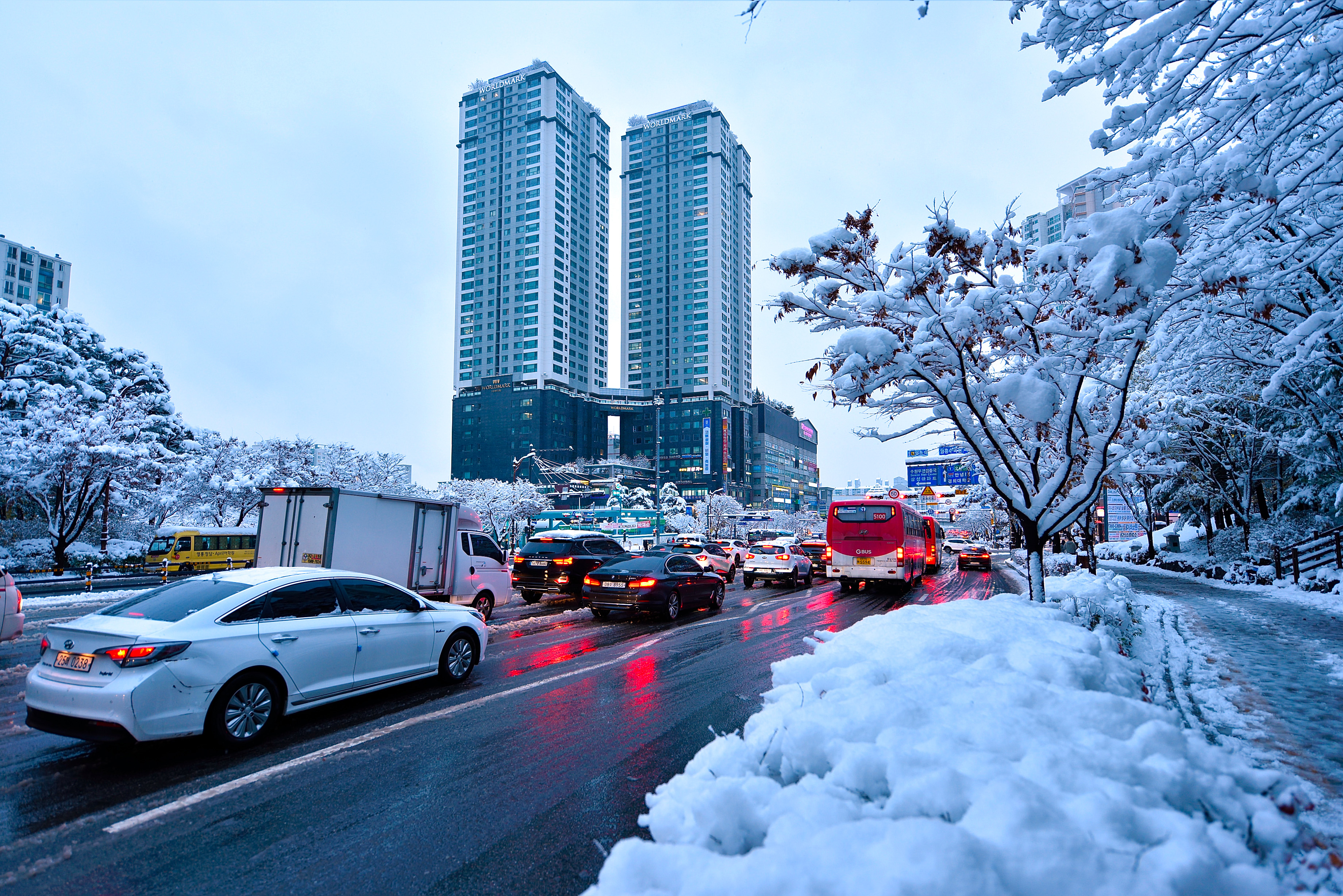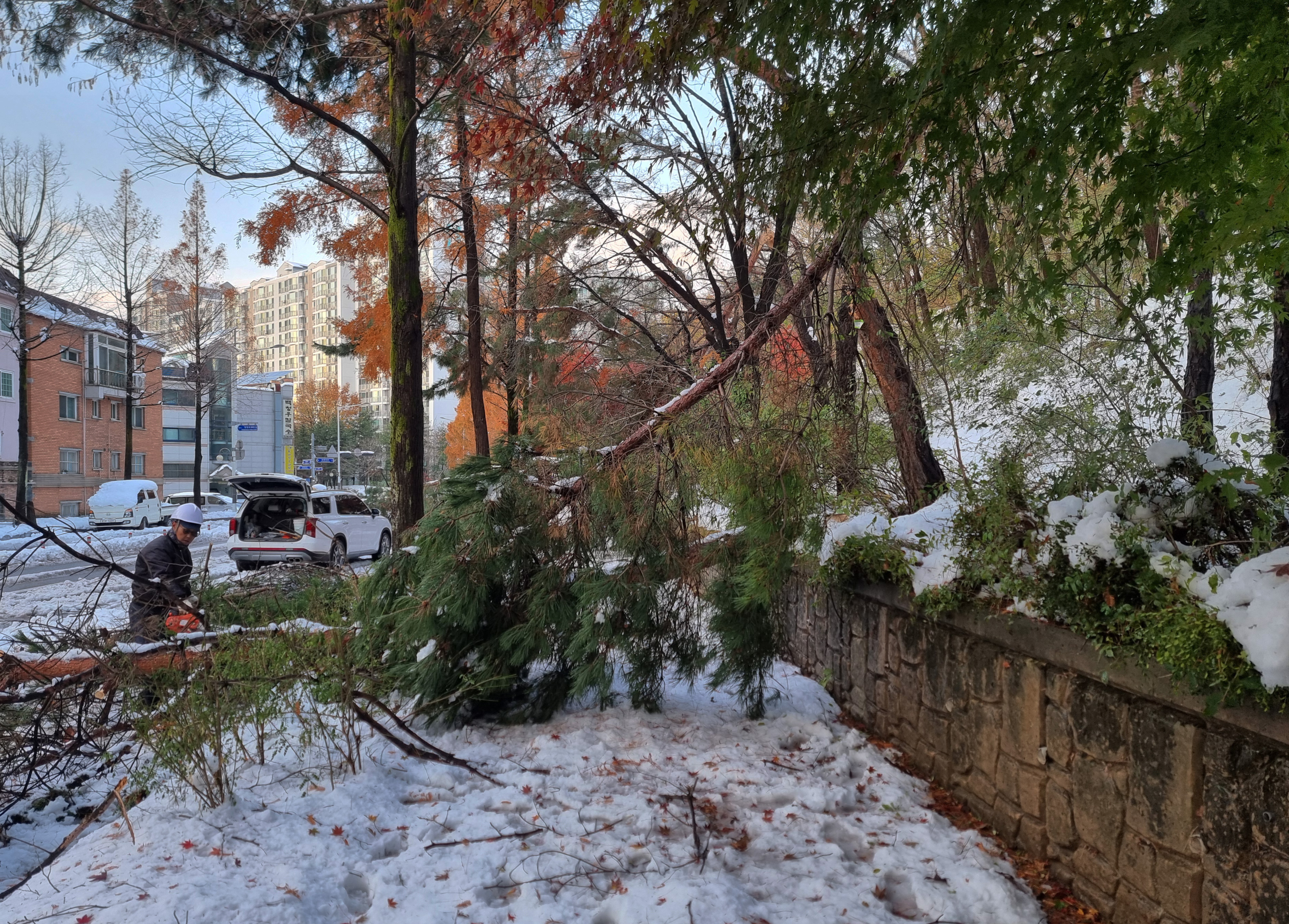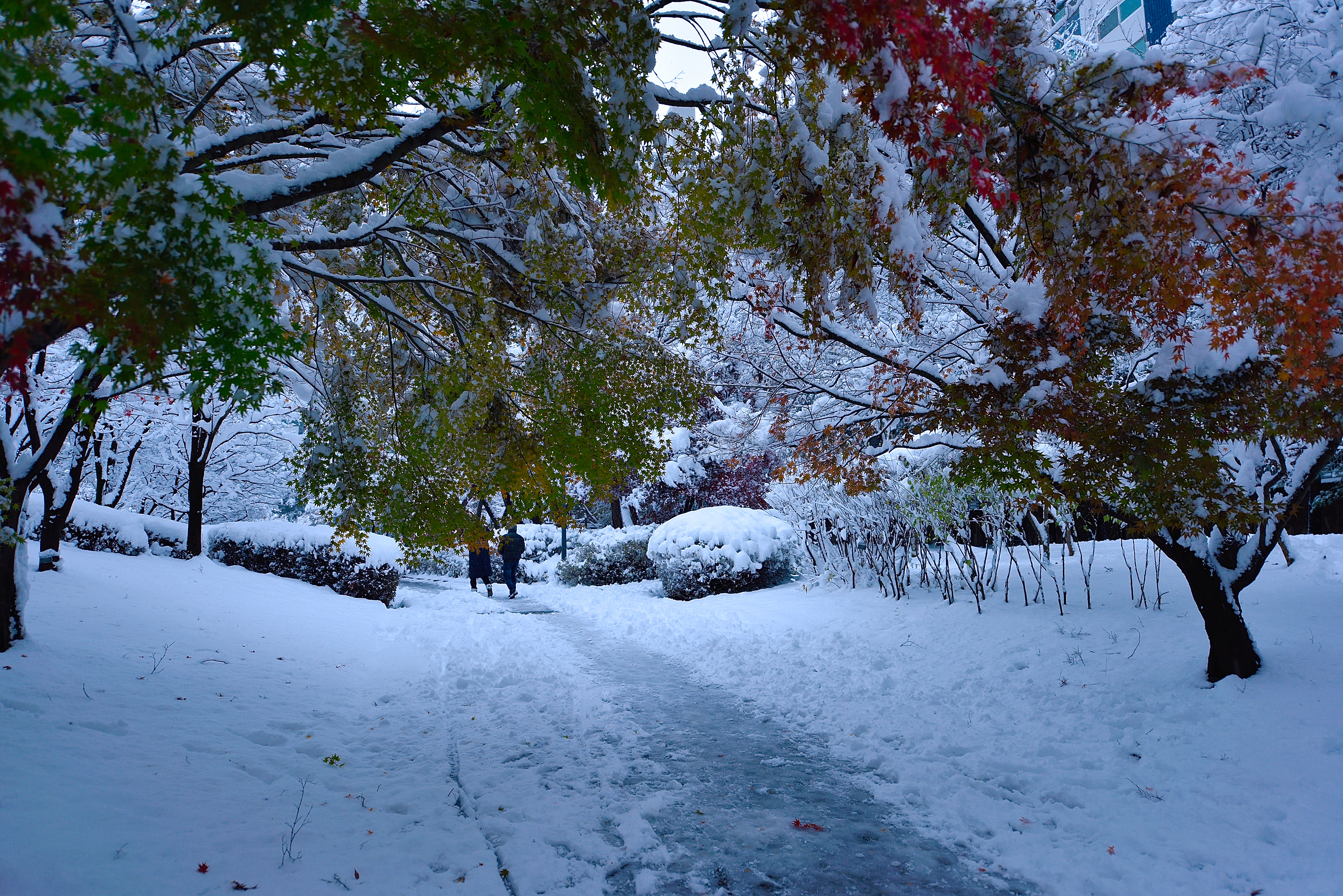 아침부터 하염없이 내리던 눈은 저녁까지 쉬지 않고 내렸다. 중간중간에 간헐적으로 조금씩 쉬어가긴 했지만, 삽시간에 이리 많이 내린 눈은 아마도 처음 보는 것 같다. 다행히 날씨가 춥지 않아 자동차 통행이 많은 큰길만 녹았다. 녹아 흐르는 눈물이 쌓인 눈아래로 흘러 도로 건널목을 건널 때마다 발이 풍덩 빠져 신발이 젖었다. 보도엔 밟힌 눈이 다져져서 얼음판이 되어 매우 미끄러웠다.