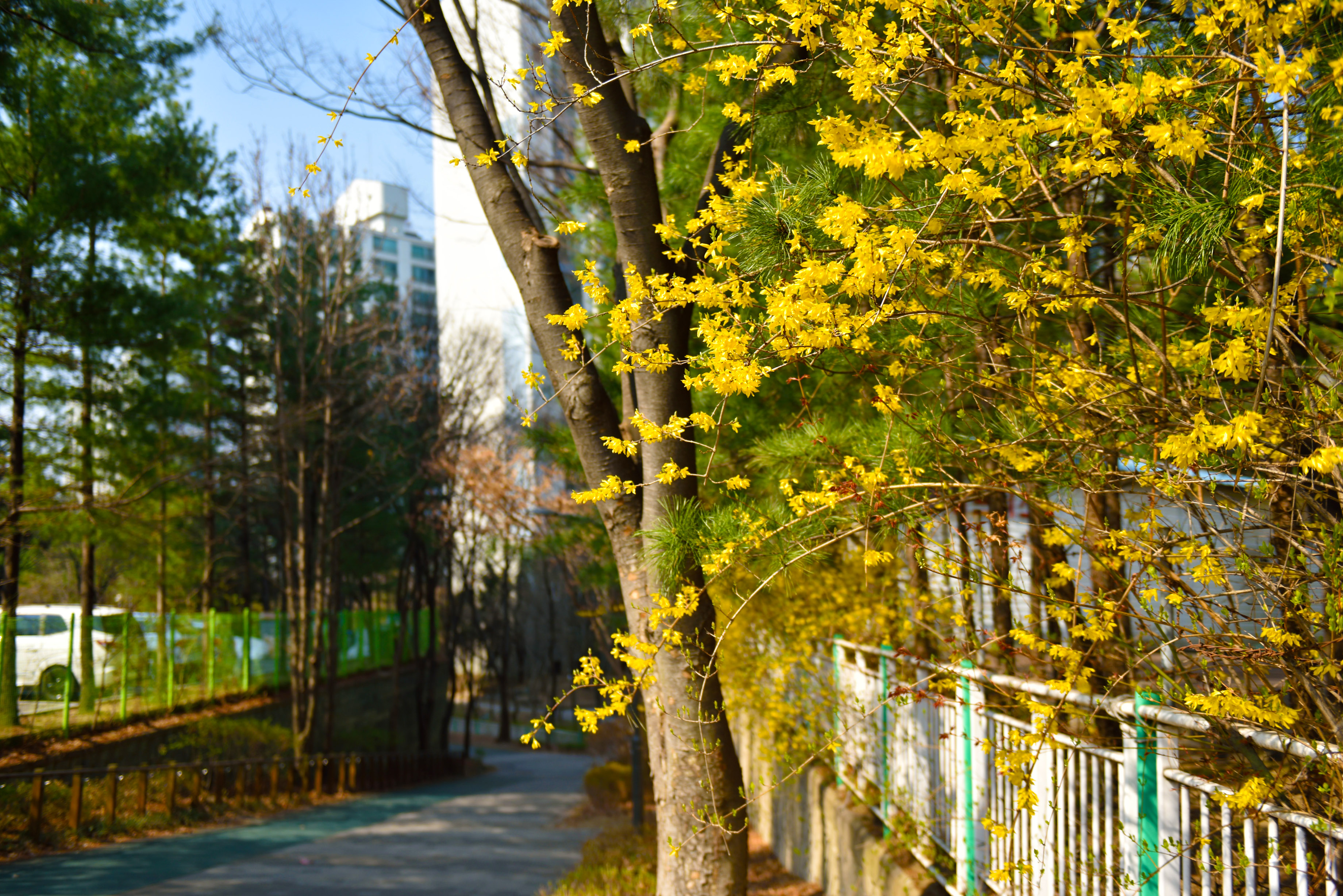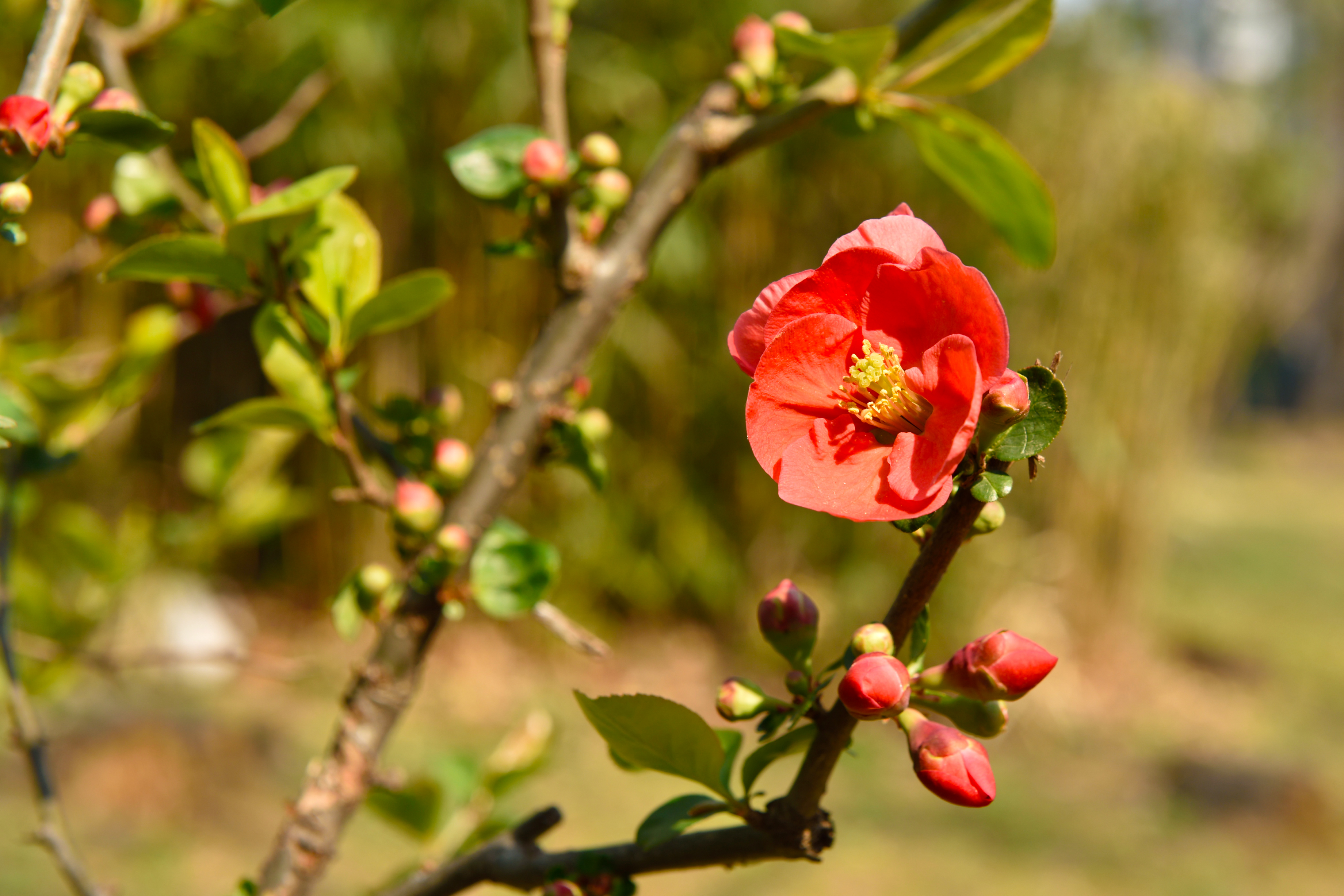 공원에 핀 명자꽃