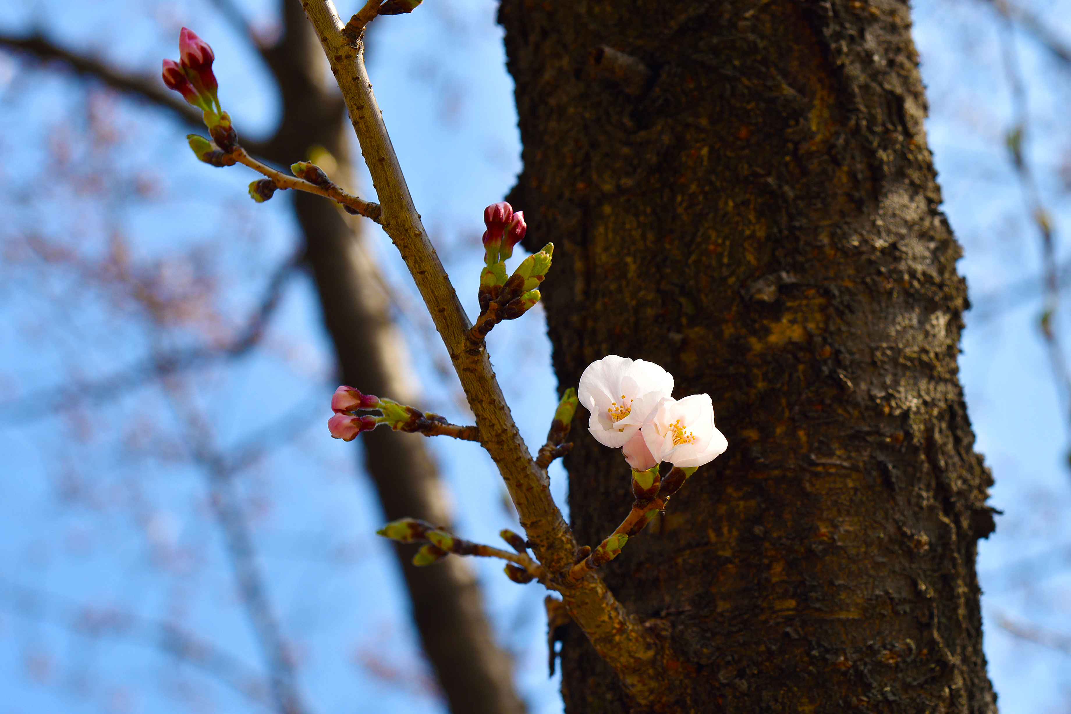 벚꽃이 망울져 터지기 직전이다.