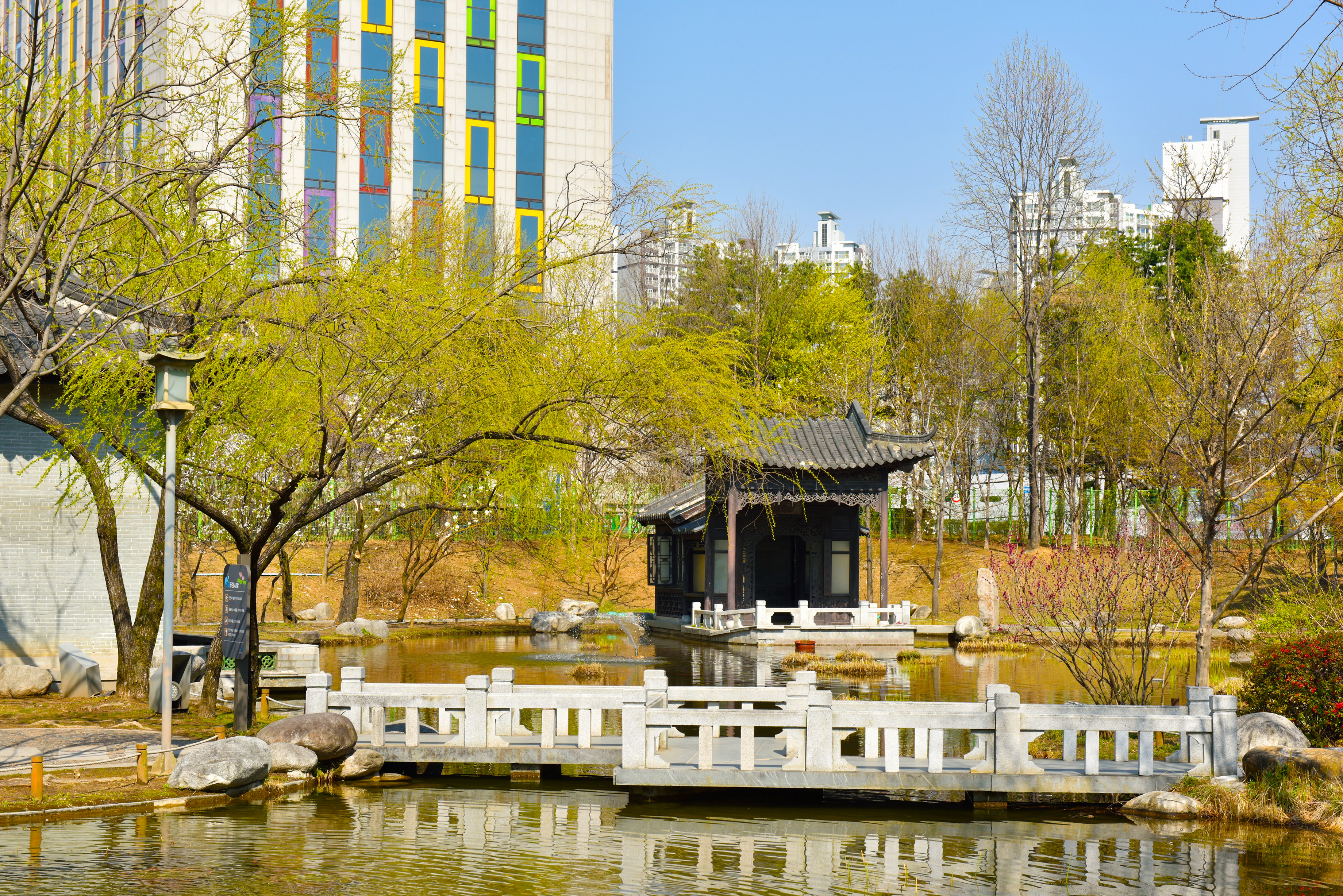 월화원은 2006년 중국 광둥성과 경기도의 우호교류 협력으로 수원 인계동 경기도문화예술회관 뒤 효원공원 안에 개장한 중국식 정원이다. 중국 광동식이라 중국 남부의 건축양식과 전통정원의 모습을 볼 수 있다. 중국 남쪽 건물의 특징인 하늘로 치솟은 지붕의 처마가 이채롭다.