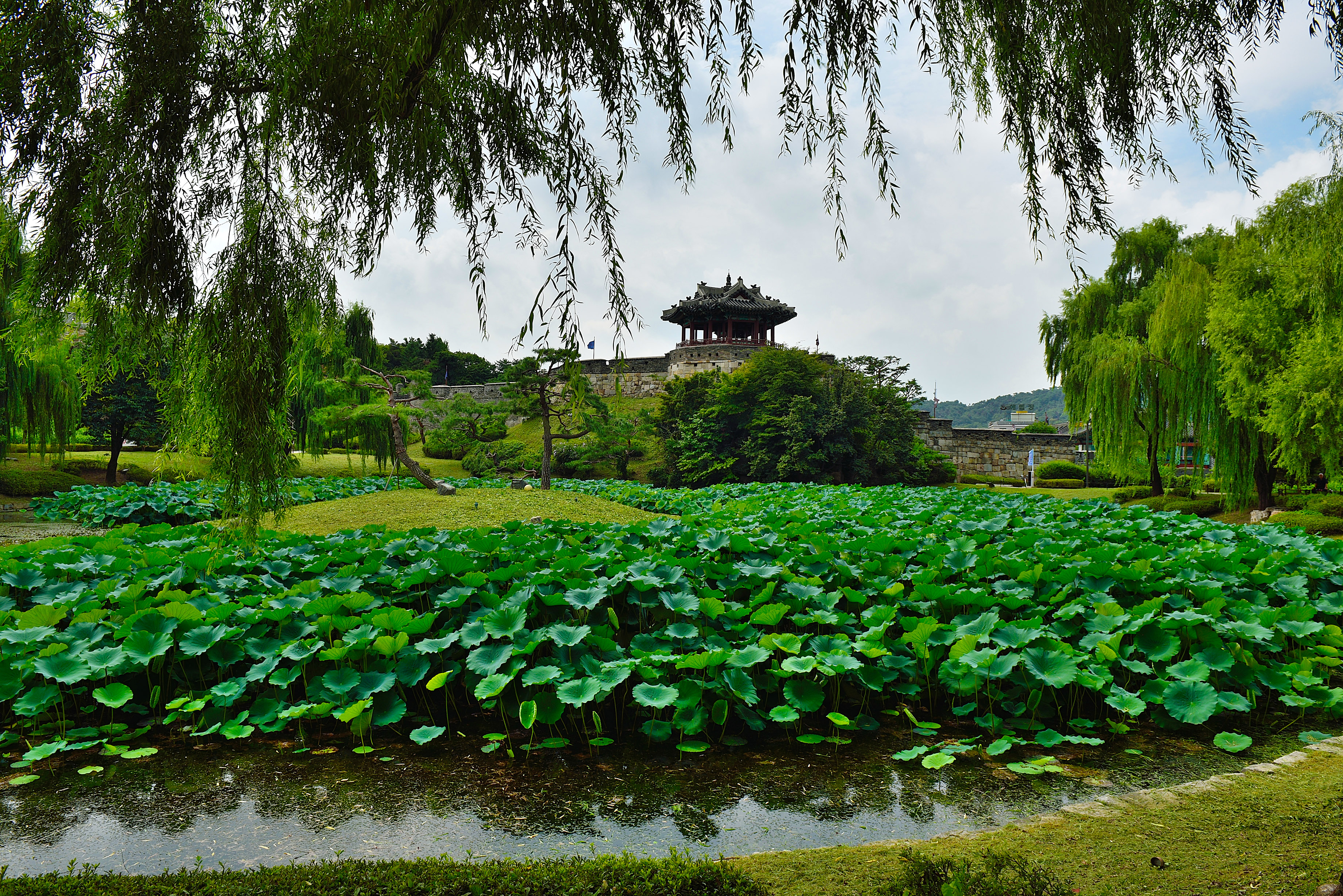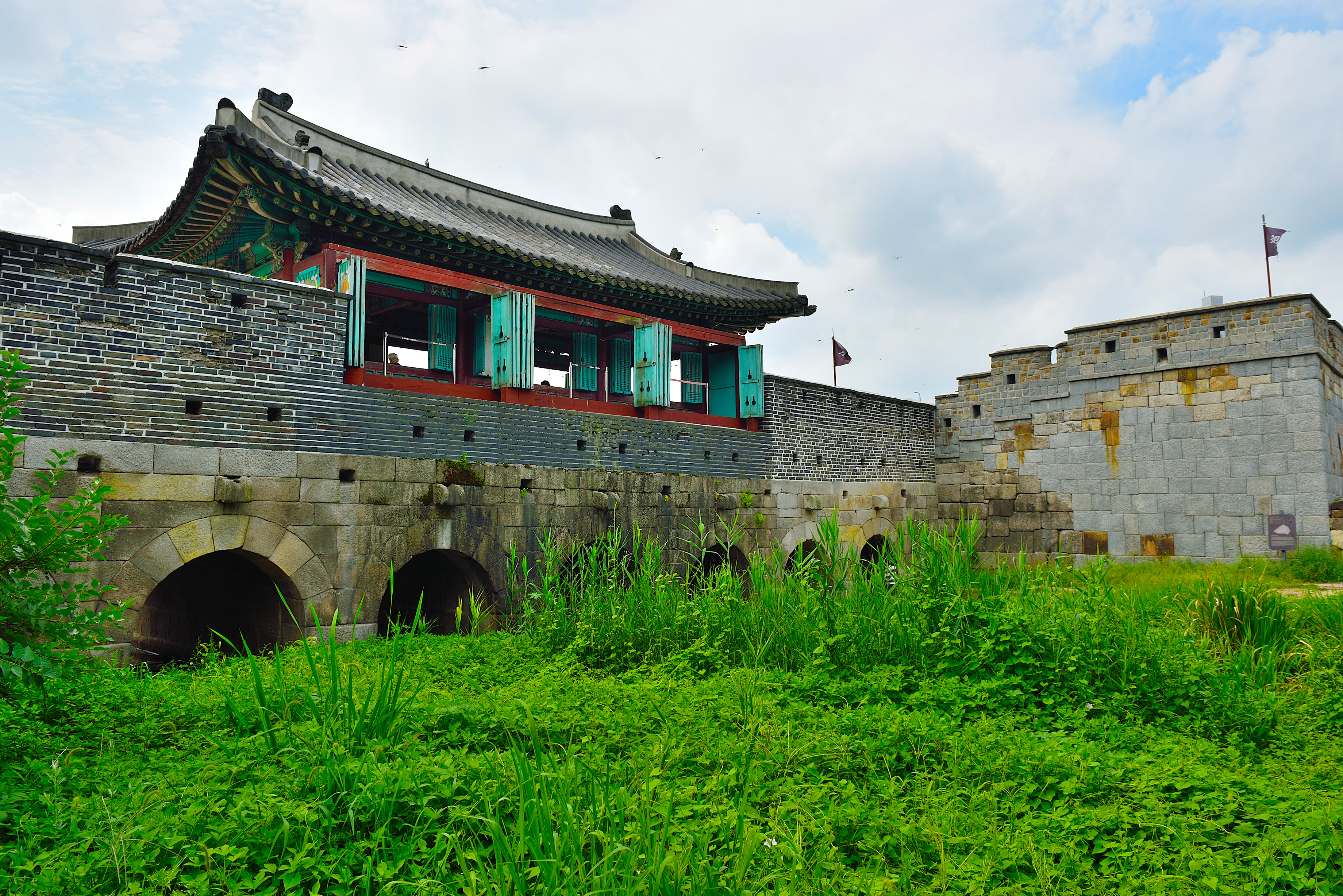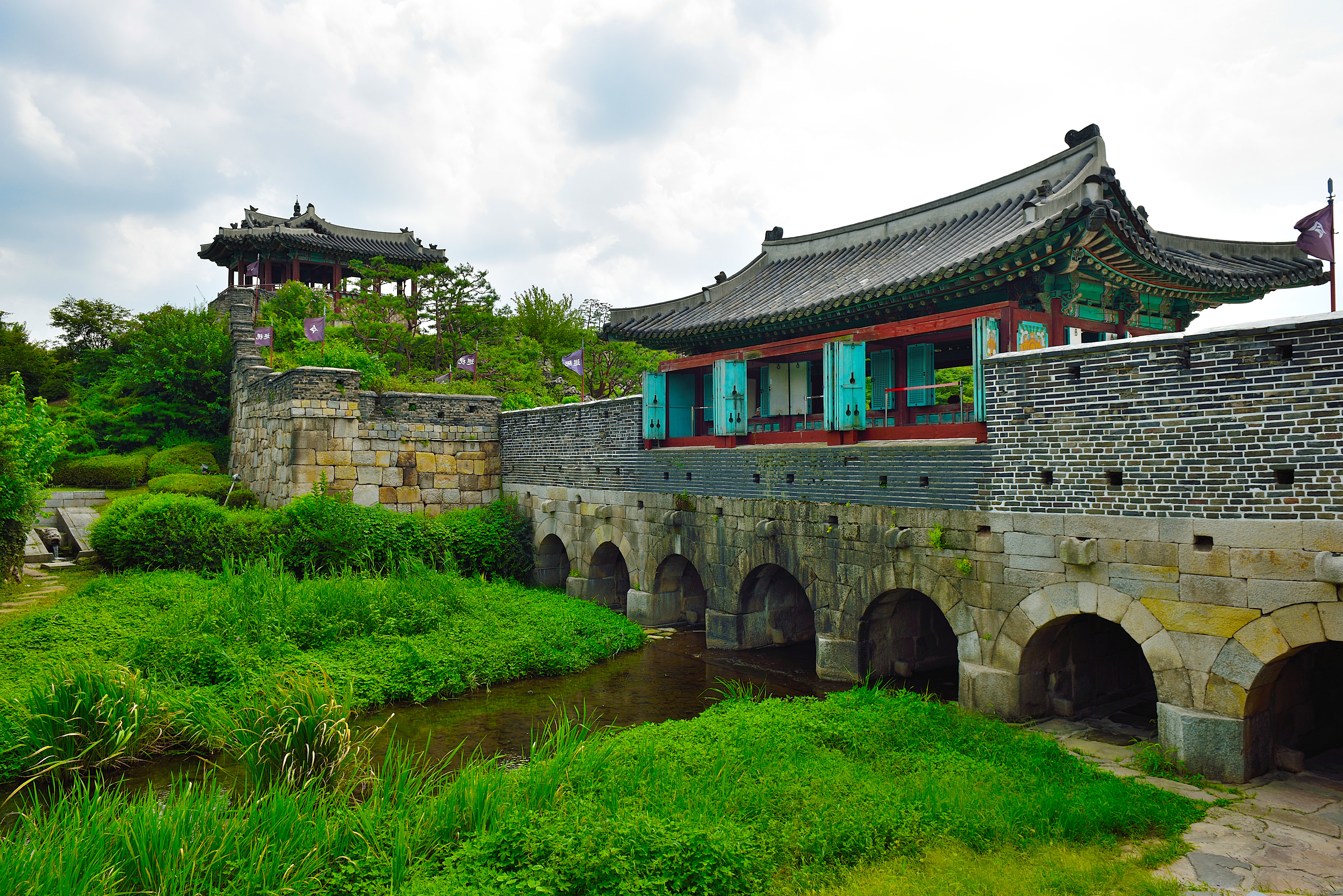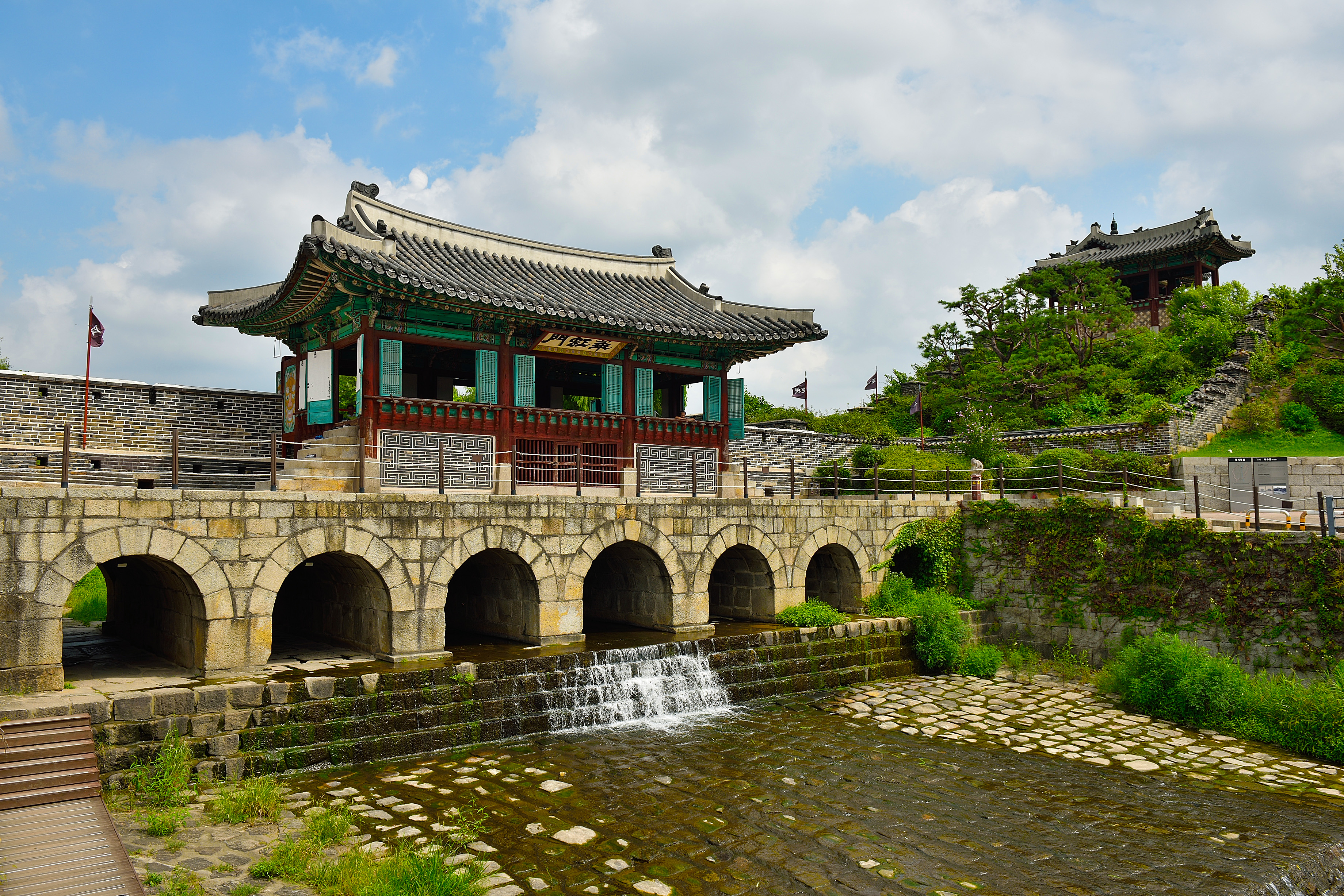 방화수류정 아래 화홍문(화성의 북수문)