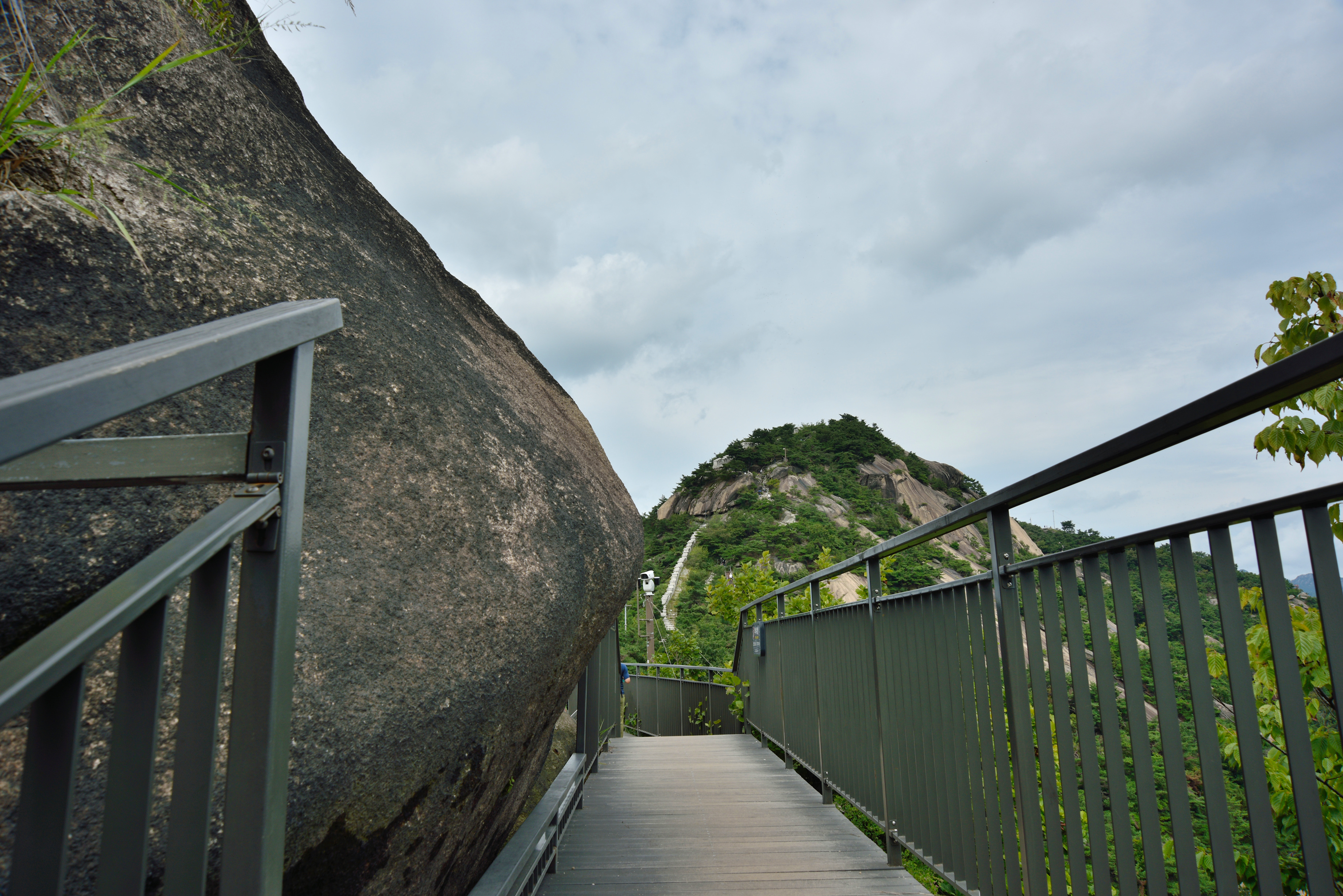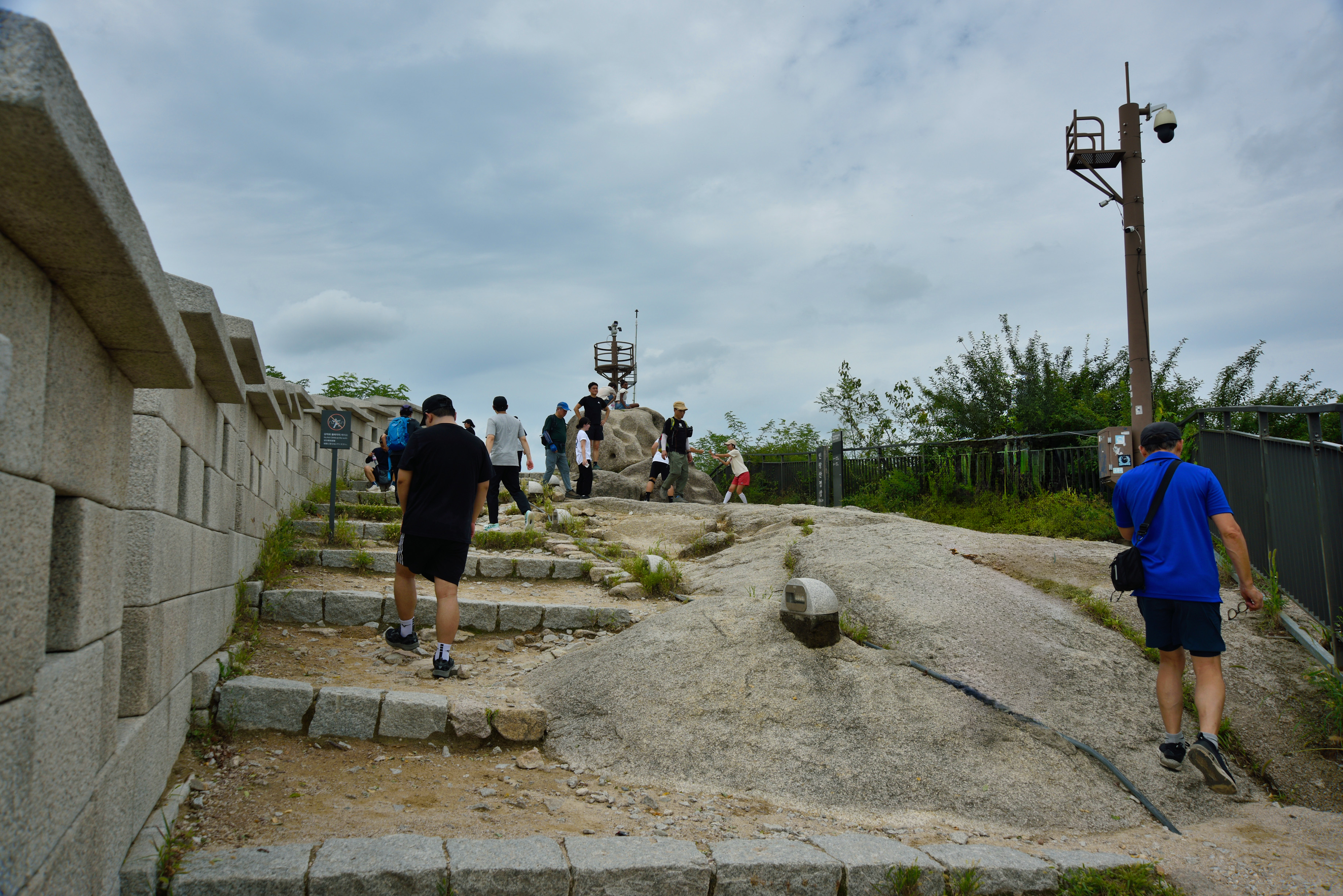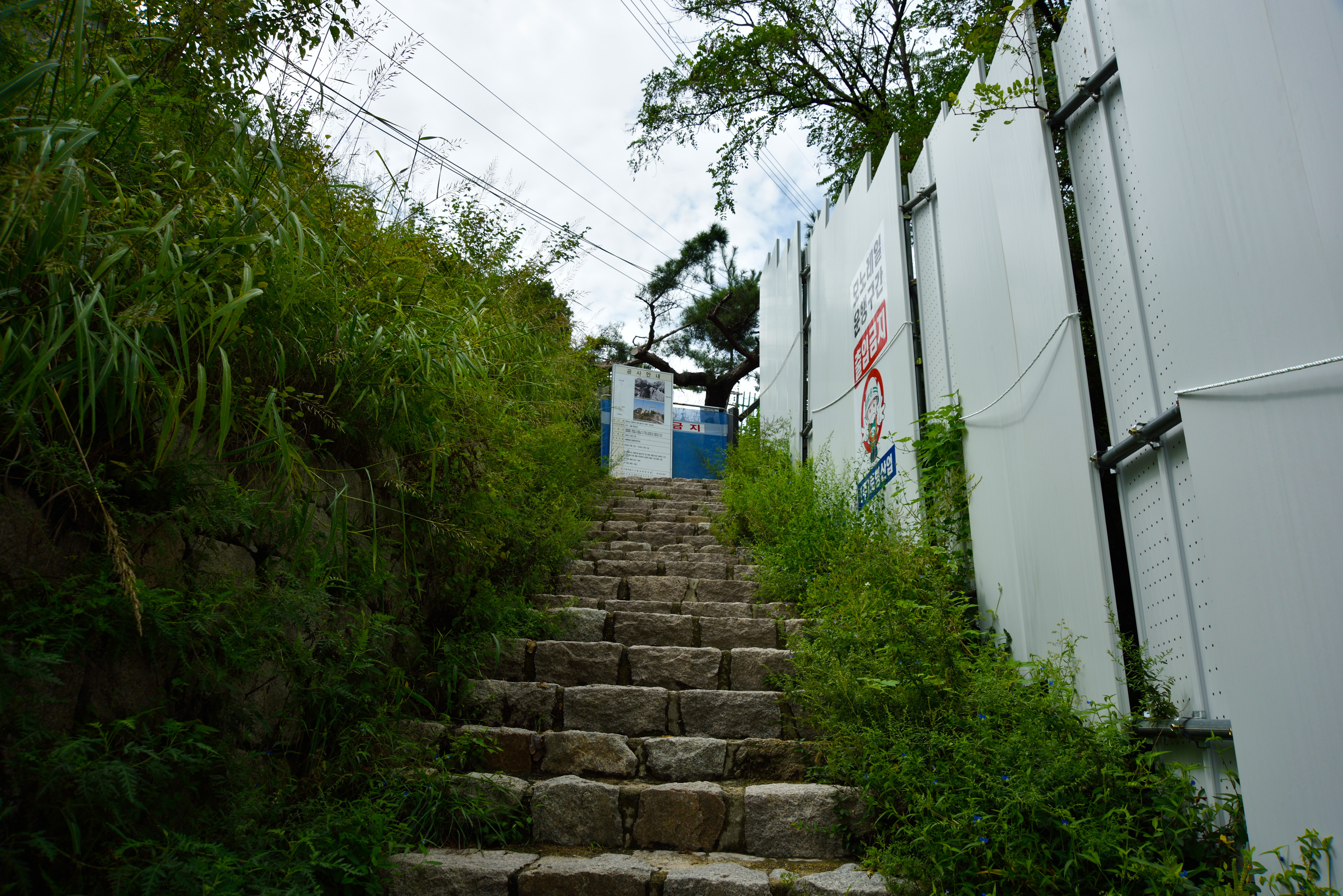 간밤엔 벼락과 우레가 무섭도록 몰아치더니, 아침 하늘은 구름 사이로 파란 하늘이 듬성듬성 보였다. 시간대별 기상예보에 다행스럽게 30도가 넘지 않았다. 맑은 날이 아니라서 잠깐 망설이다 카메라 가방을 둘러메고 집을 나섰다. 경복궁역 1번 출구로 나와 사직단을 거쳐 단군성전, 황학정 언덕길을 타박타박 걸어 올라갔다. 휴대폰 지도를 보며 찾아가는 길이지만, 그 길이 맞나 싶어 지나가는 행인에게 길을 물어 인왕산 성벽길로 접어들었다.