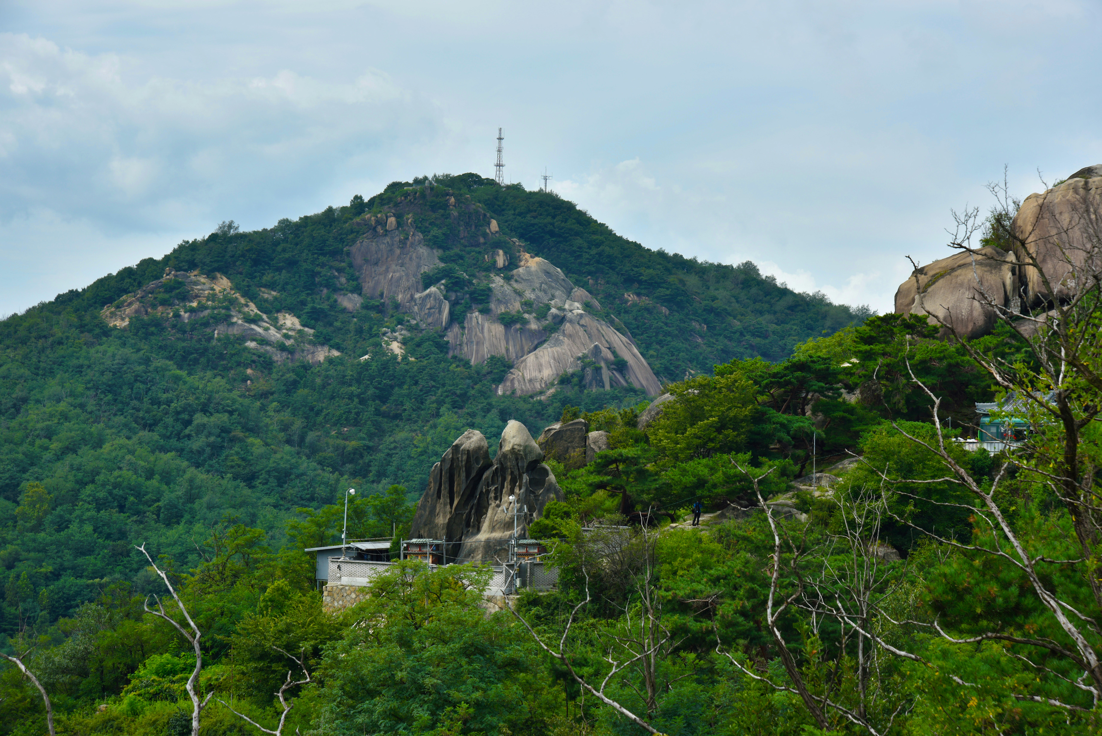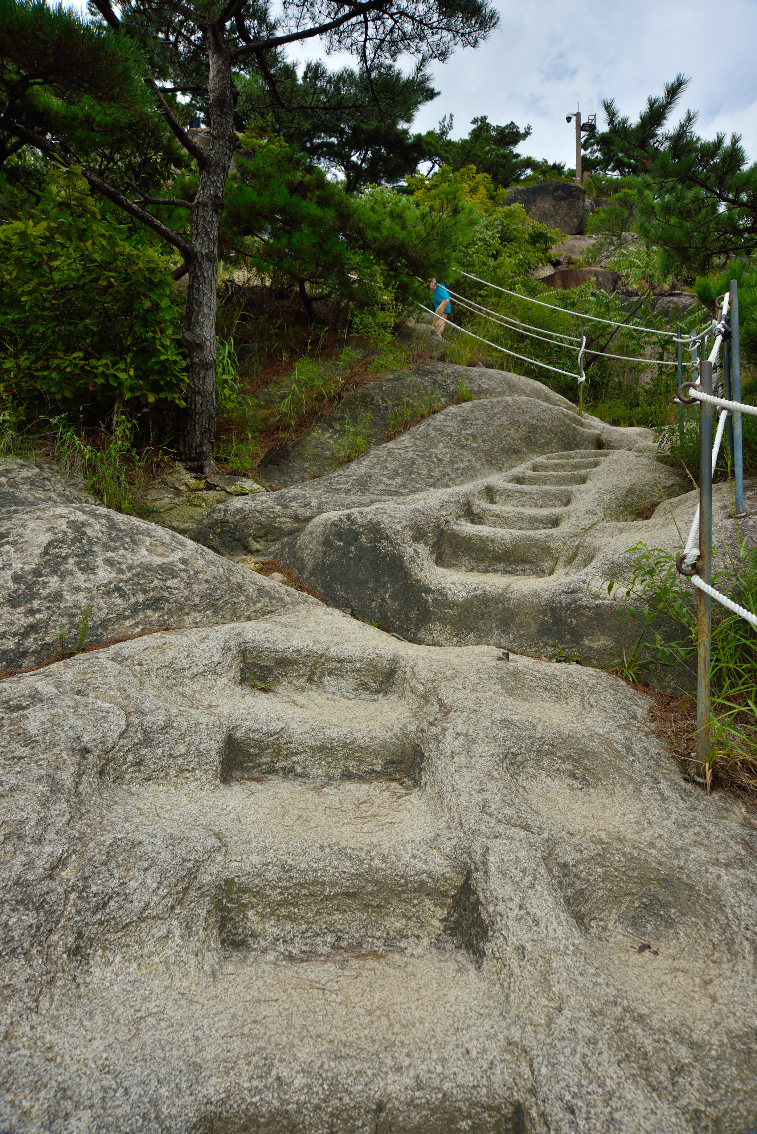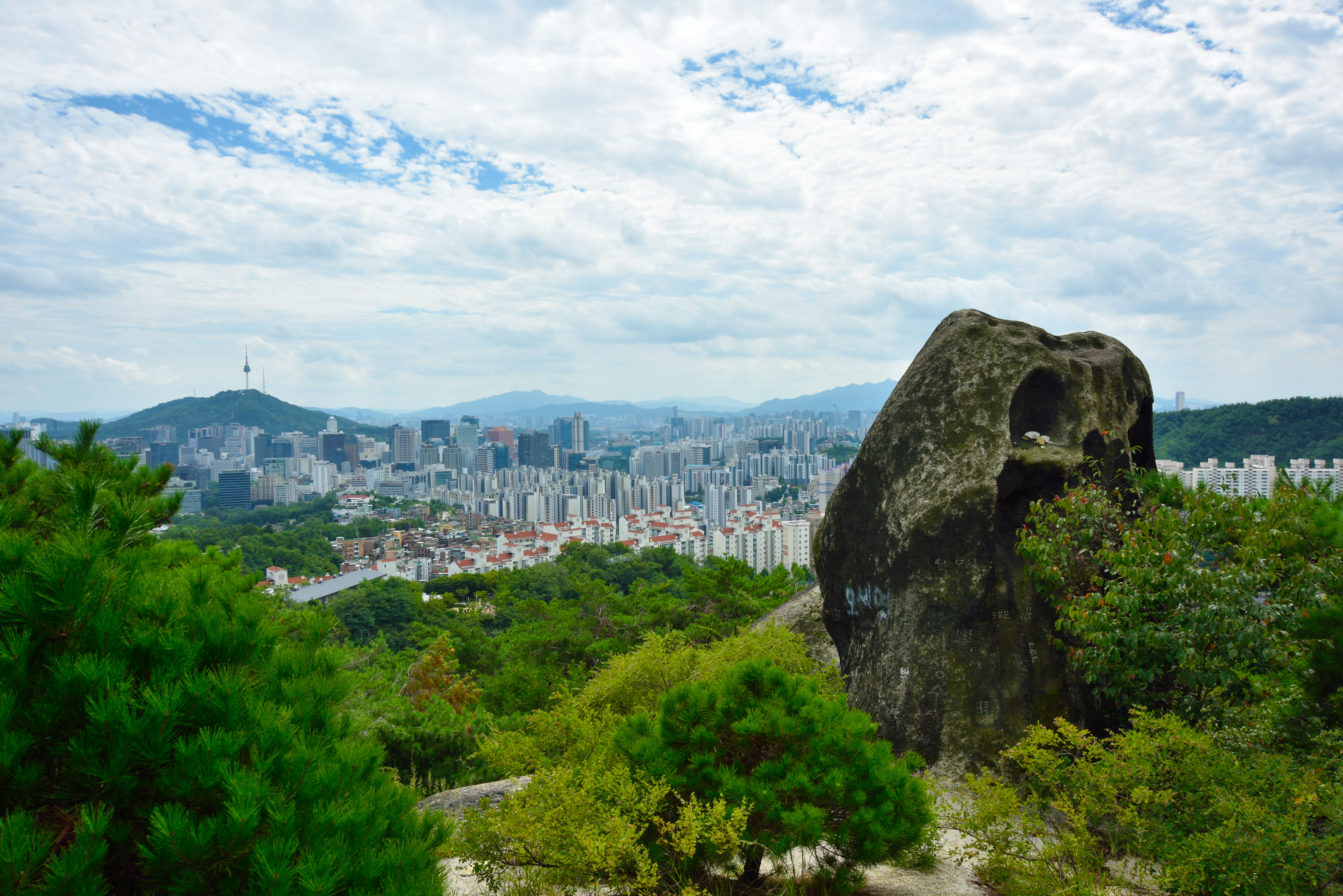 간밤엔 벼락과 우레가 무섭도록 몰아치더니, 아침 하늘은 구름 사이로 파란 하늘이 듬성듬성 보였다. 시간대별 기상예보에 다행스럽게 30도가 넘지 않았다. 맑은 날이 아니라서 잠깐 망설이다 카메라 가방을 둘러메고 집을 나섰다. 경복궁역 1번 출구로 나와 사직단을 거쳐 단군성전, 황학정 언덕길을 타박타박 걸어 올라갔다. 휴대폰 지도를 보며 찾아가는 길이지만, 그 길이 맞나 싶어 지나가는 행인에게 길을 물어 인왕산 성벽길로 접어들었다.