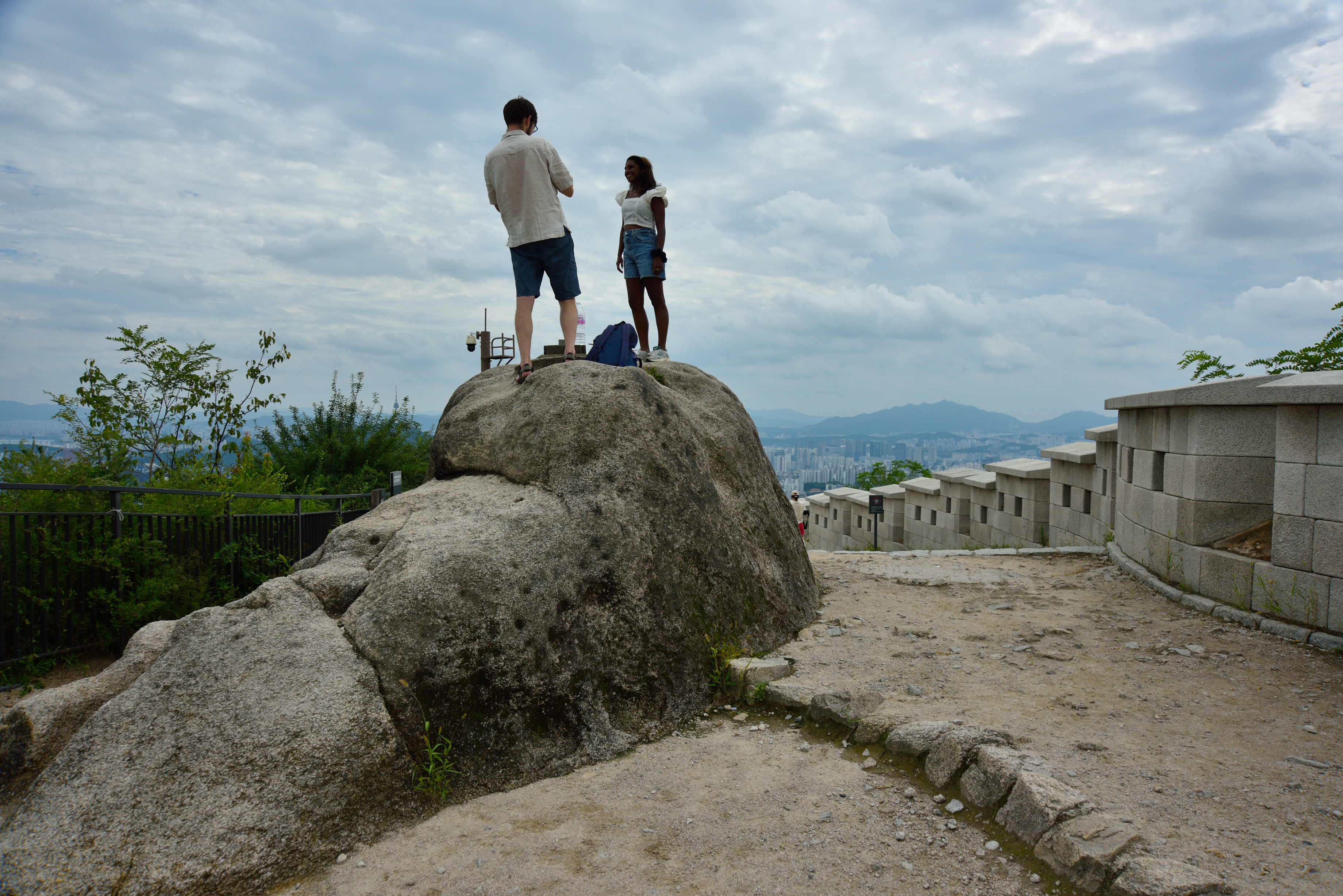 정상석 위의 외국인 커플