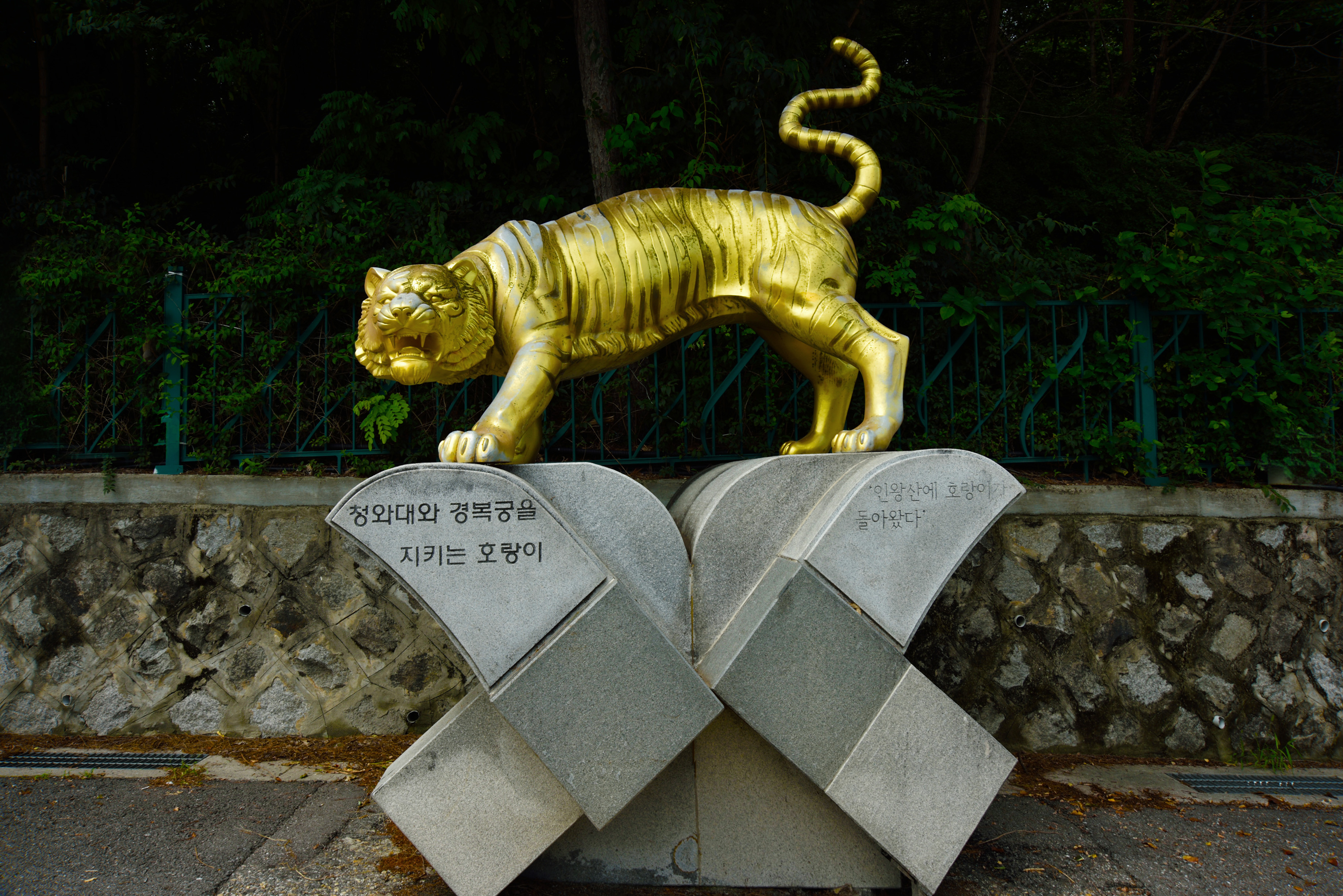 황학정에서 큰길 따라 올라가다 인왕산 호랑이상이 있는 삼거리에서 왼쪽으로 접어들었다. 인왕산은 경복궁을 보호하는 우청룡이고, 좌백호는 동대문에서 북악산으로 이어지는 낙산 능선이다.