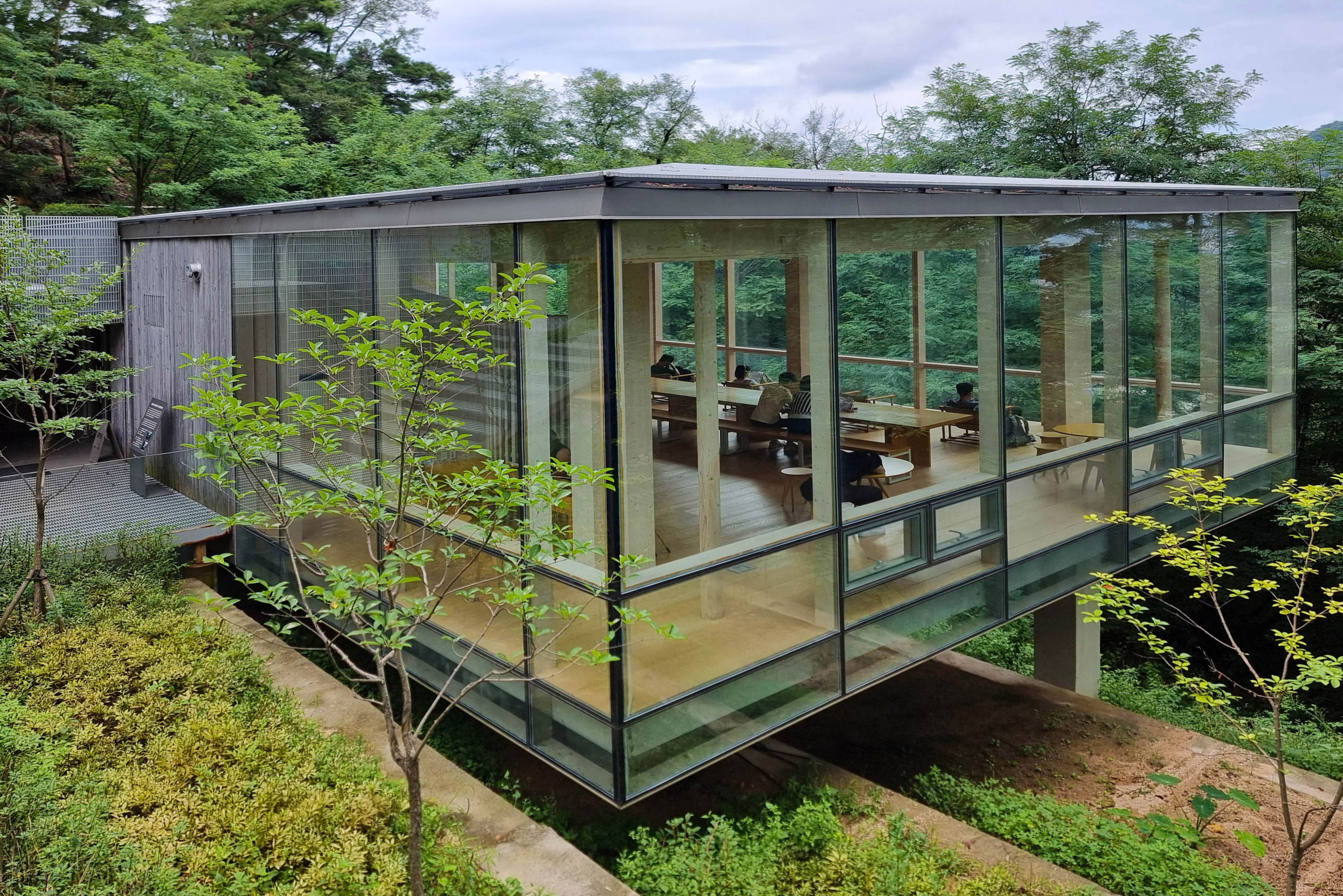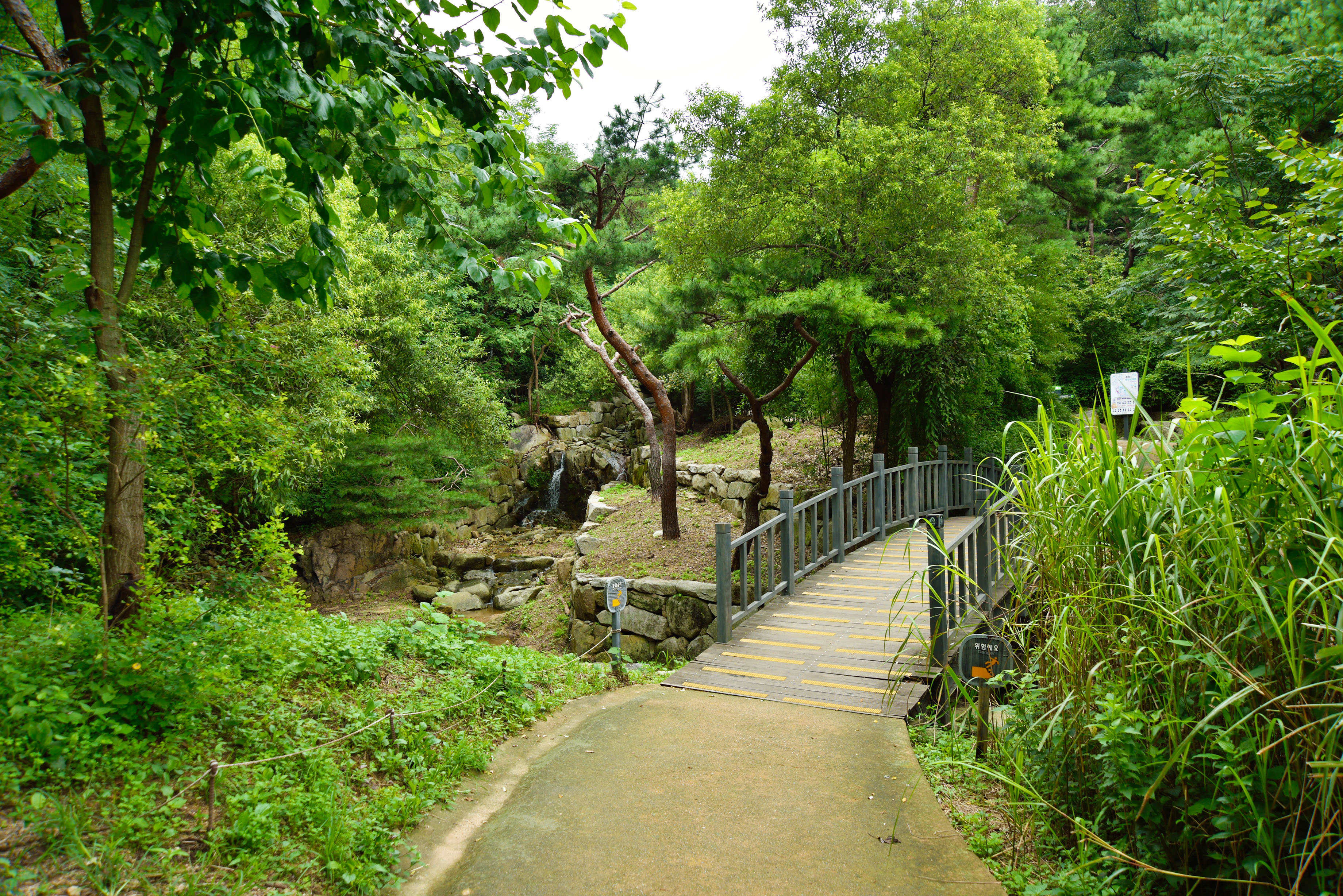 수성동 계곡 갈림길 바로 아래 숲 속의 쉼터 도서관, 너무 더워 도서관에 들어가 세수하고 에어컨 바람에 땀도 식히며 잠시 쉬었다.