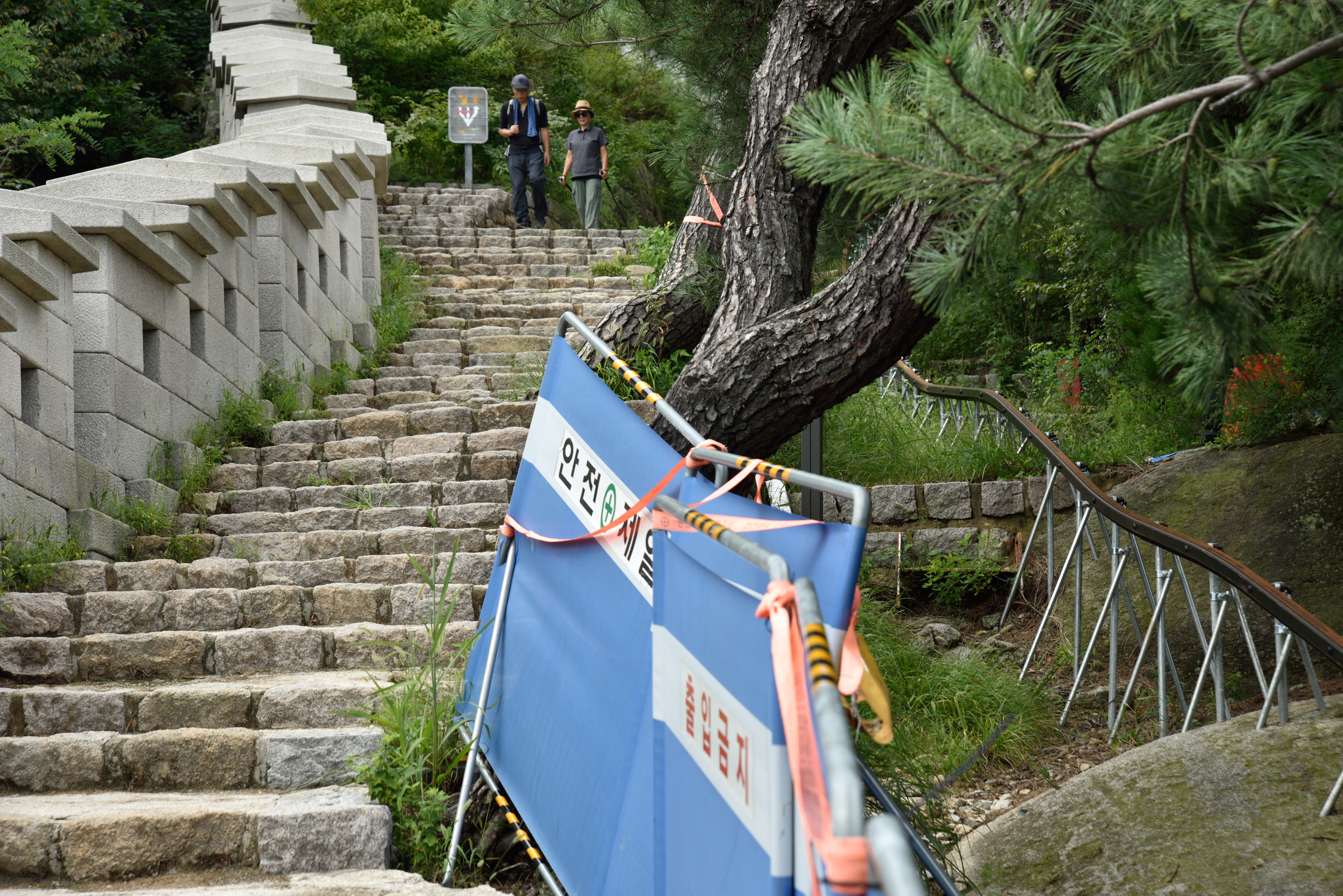 모노레일 공사현장, 인왕산 공원 보수를 위한 자재 운반용 모노레일이라니 정신이 나가도 보통이 아닌 듯 싶다. 아름다운 숲길이 흉물스러워졌다. 그 흔한 환경평가는 하지 않았는지 이해되지 않았다. 돌산을 얼마나 보수한다고 흉한 모노레일을 성벽 안에 설치하다니, 끔찍하다.