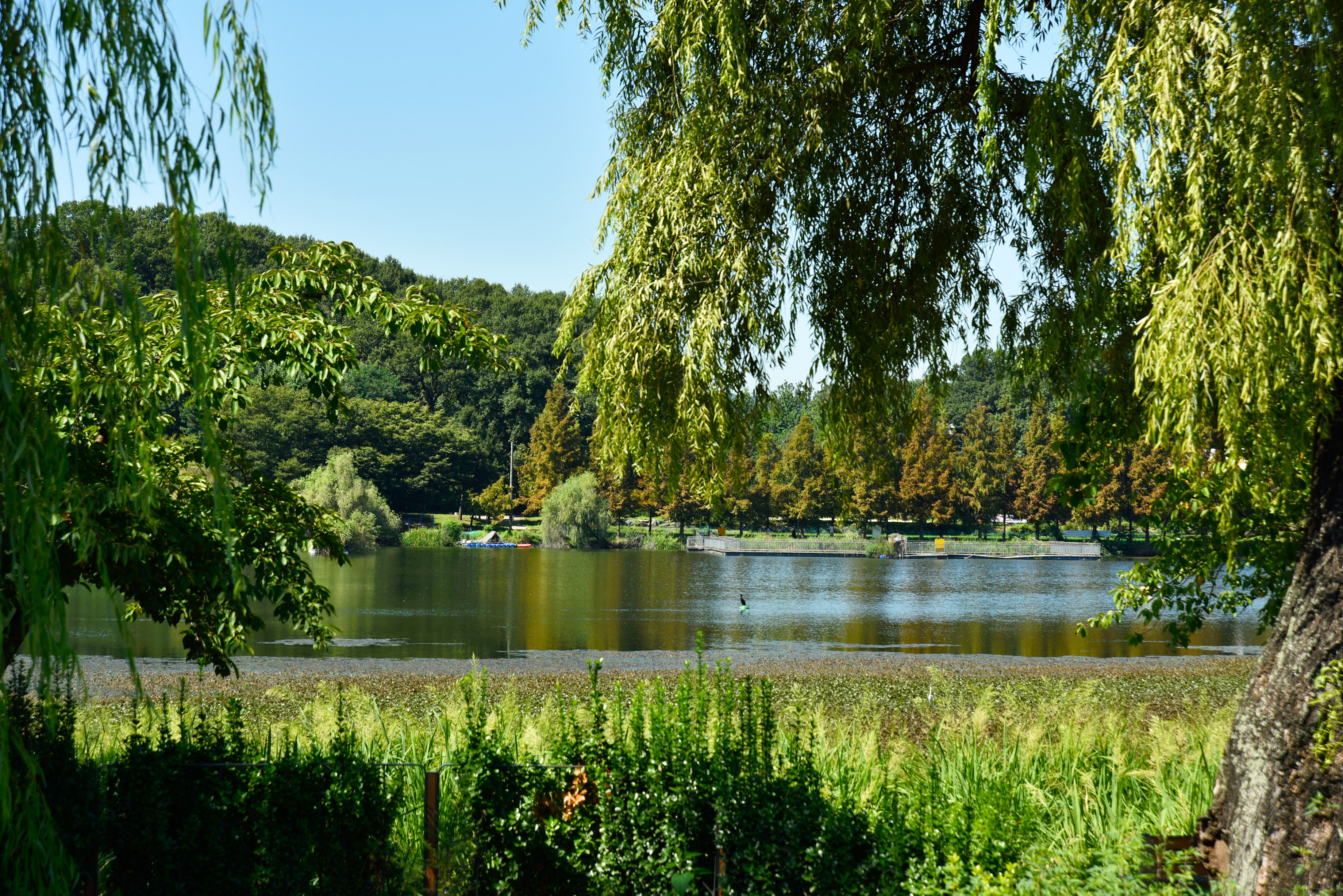 수목원 앞 일월 저수지, 차라리 저수지 둘레길을 걷고 싶어 가까이 저수지 가까이 갔으나, 울타리로 막아 놓았다. 저수지 밖 그늘진 둘레길을 걷는 사람들이 오히려 부러웠다.
