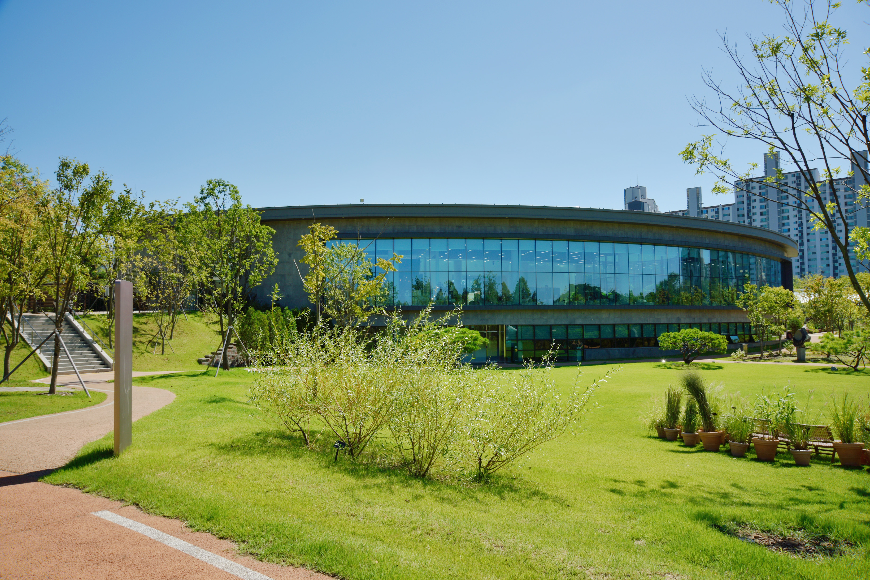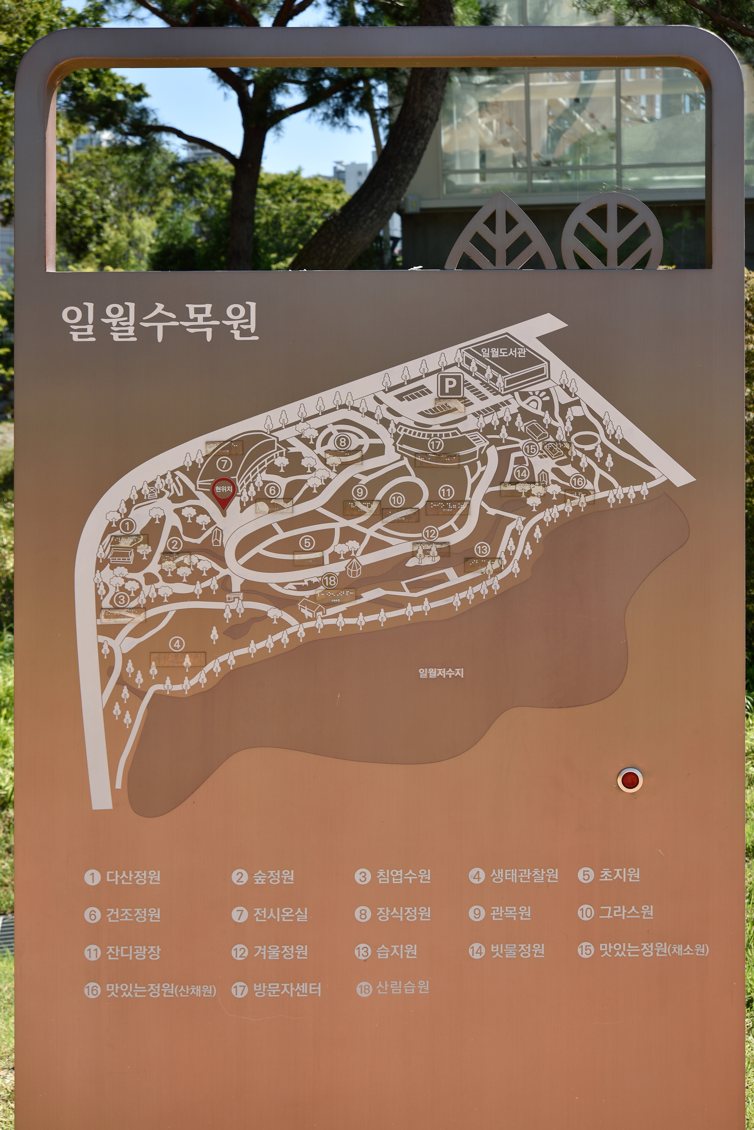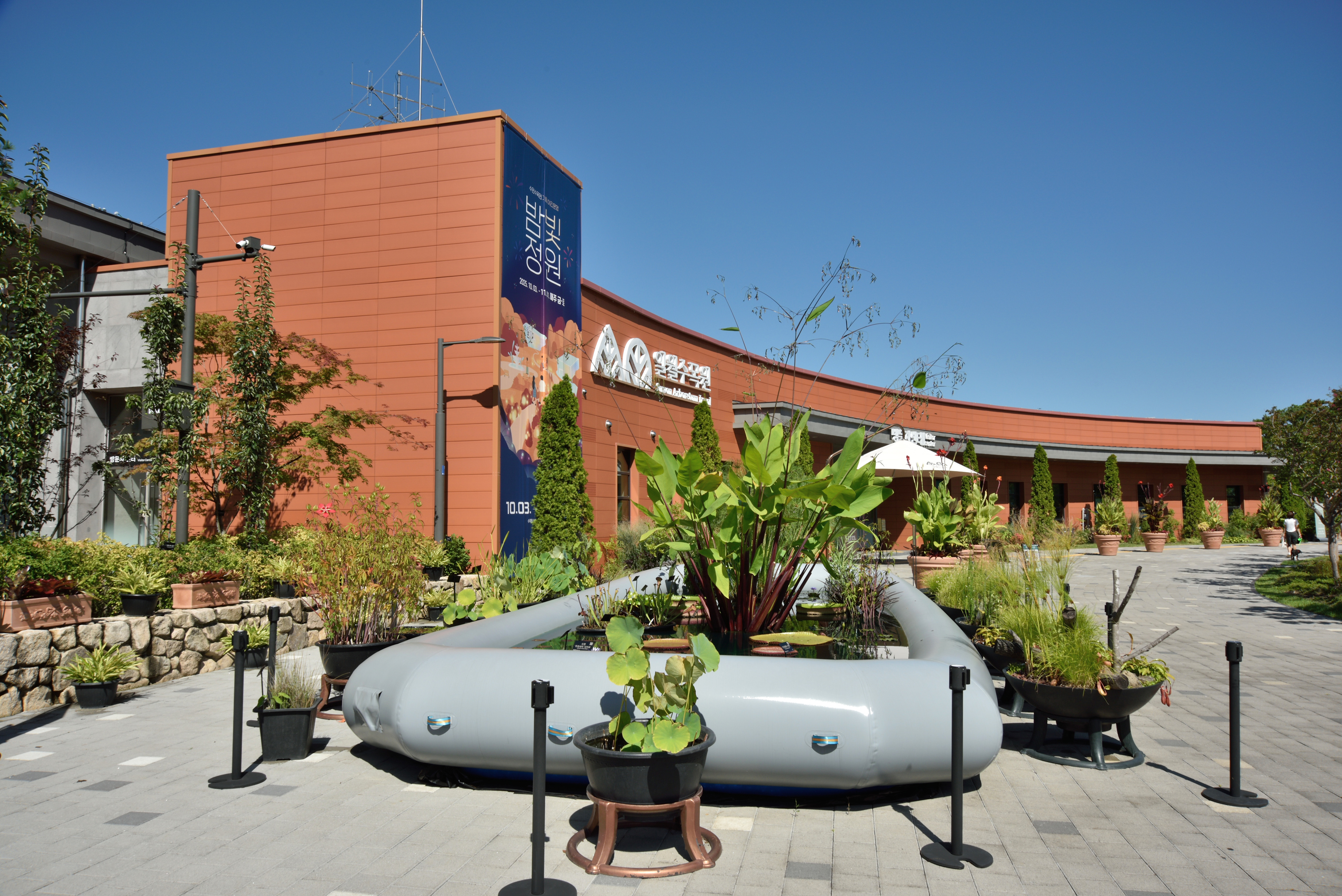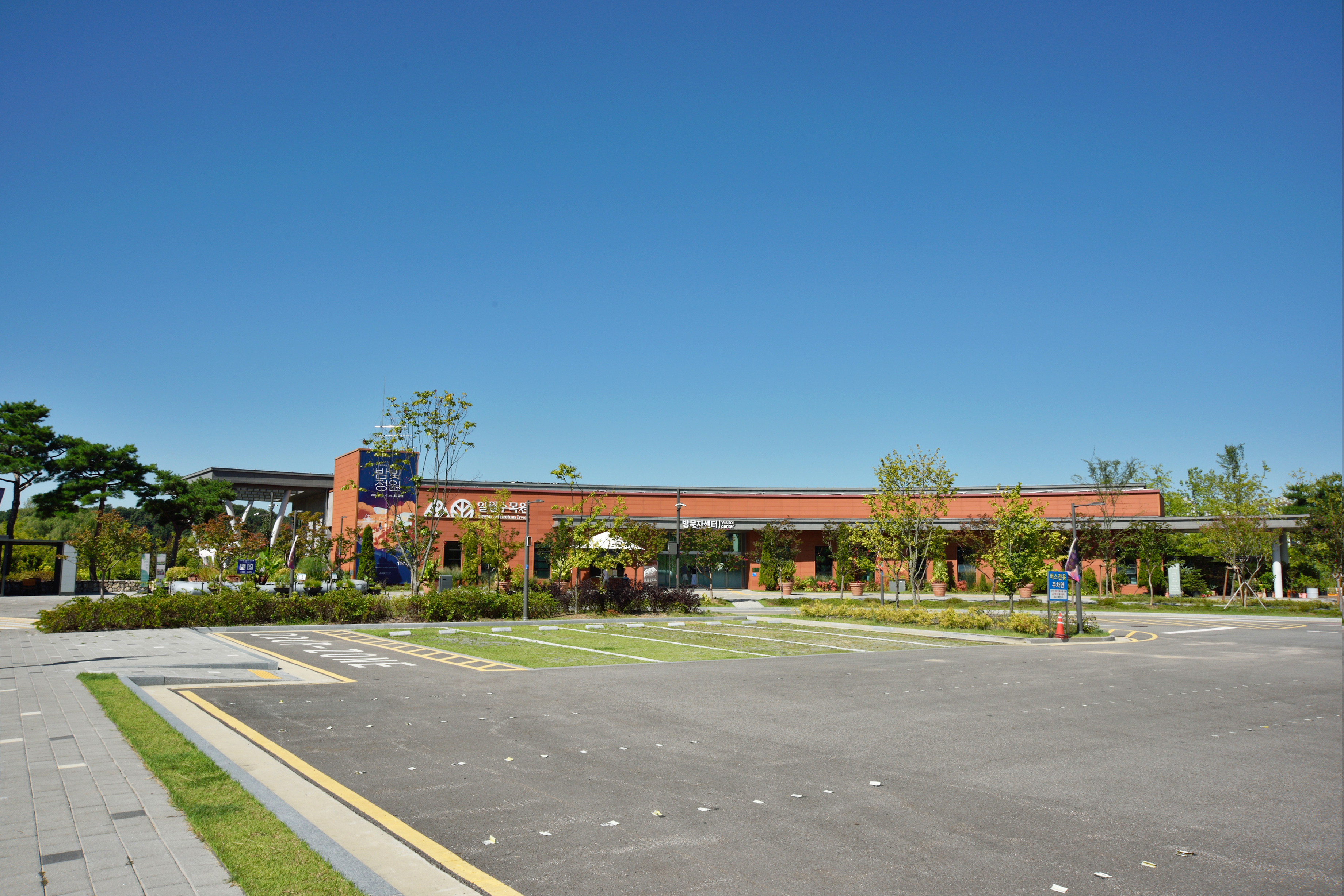 주차장 앞 수목원 방문자 센터